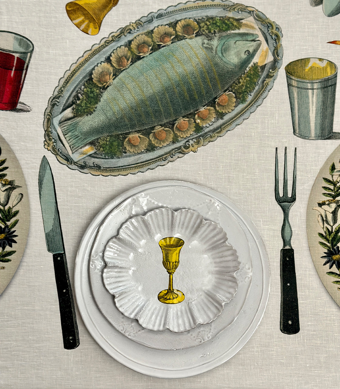 Petals, stems & blossoms from John Derian’s botanical decoupage reimagined in 'Botanical Wildflower' design, blooming in colour and quiet charm across our 100% french linen tablecloth and napkins.