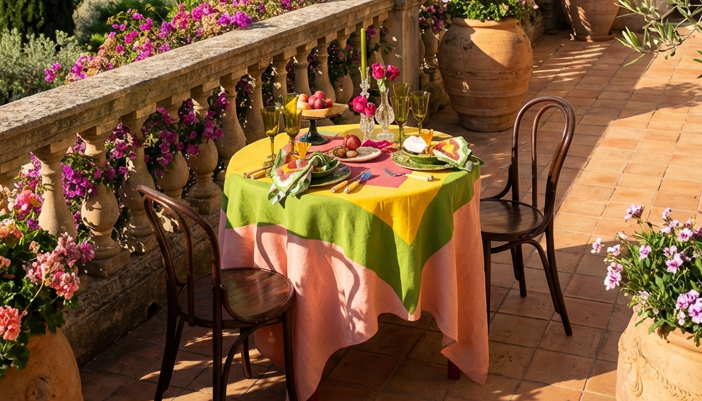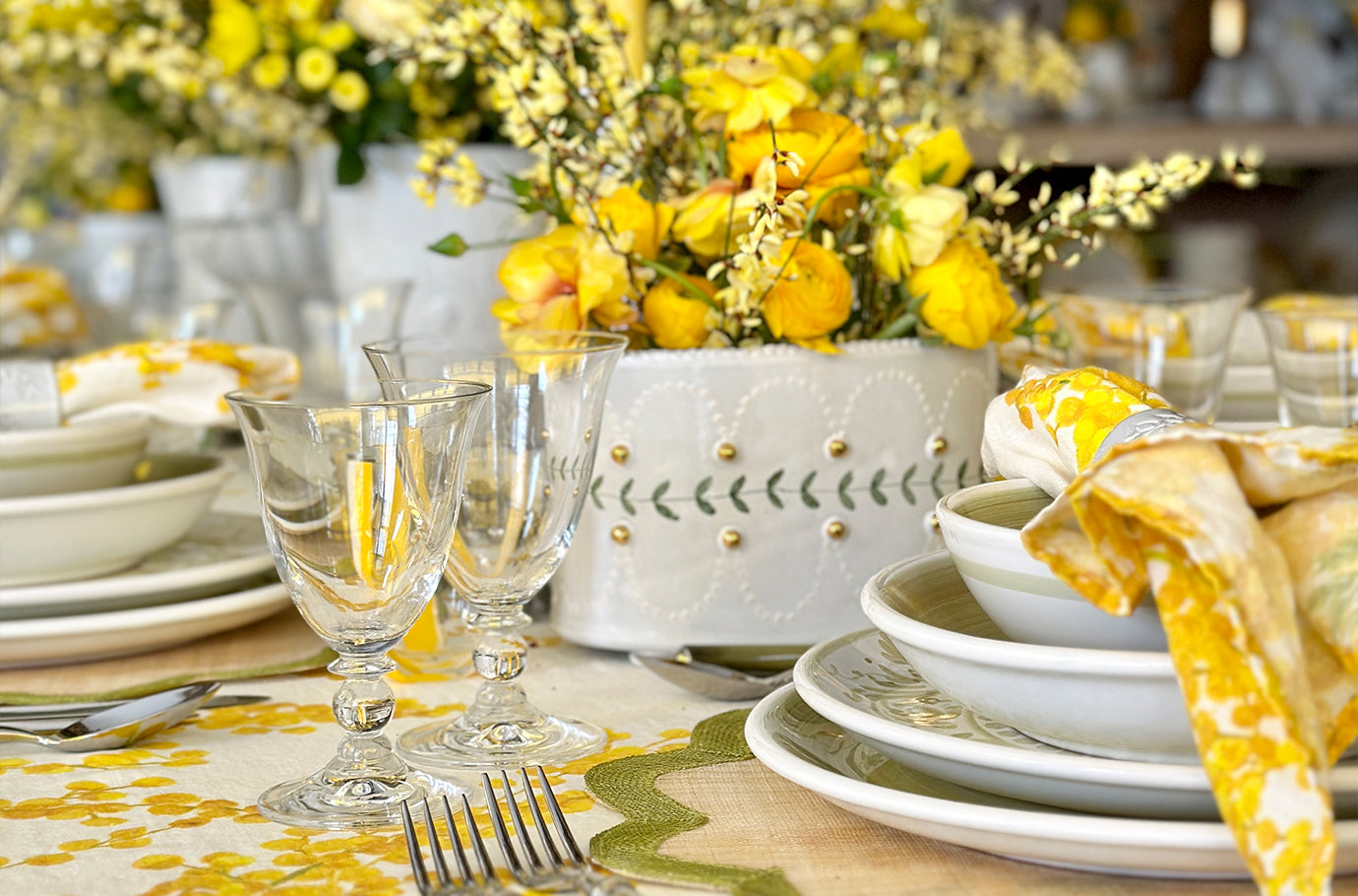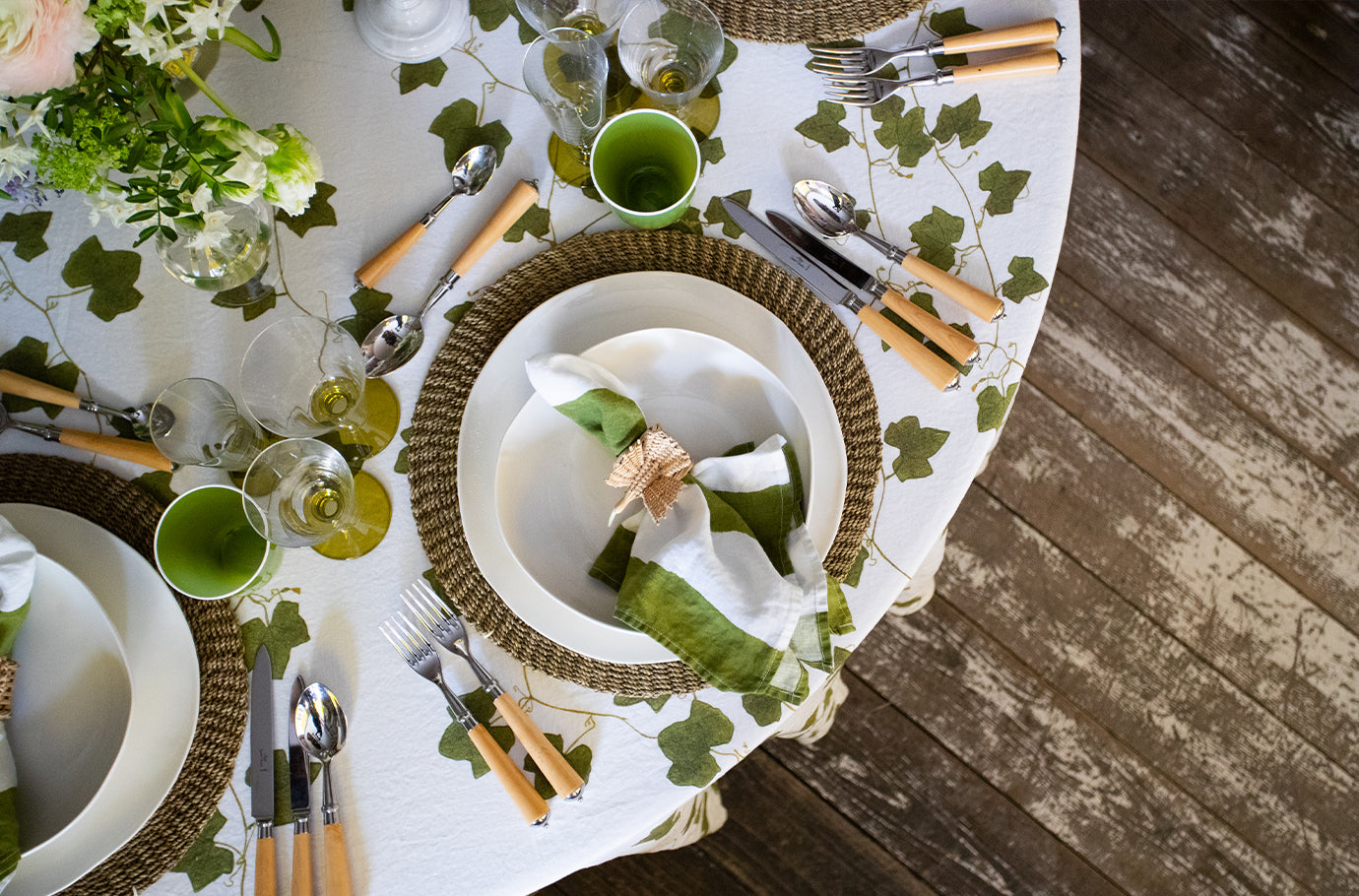 Petals, stems & blossoms from John Derian’s botanical decoupage reimagined in 'Botanical Wildflower' design, blooming in colour and quiet charm across our 100% french linen tablecloth and napkins.