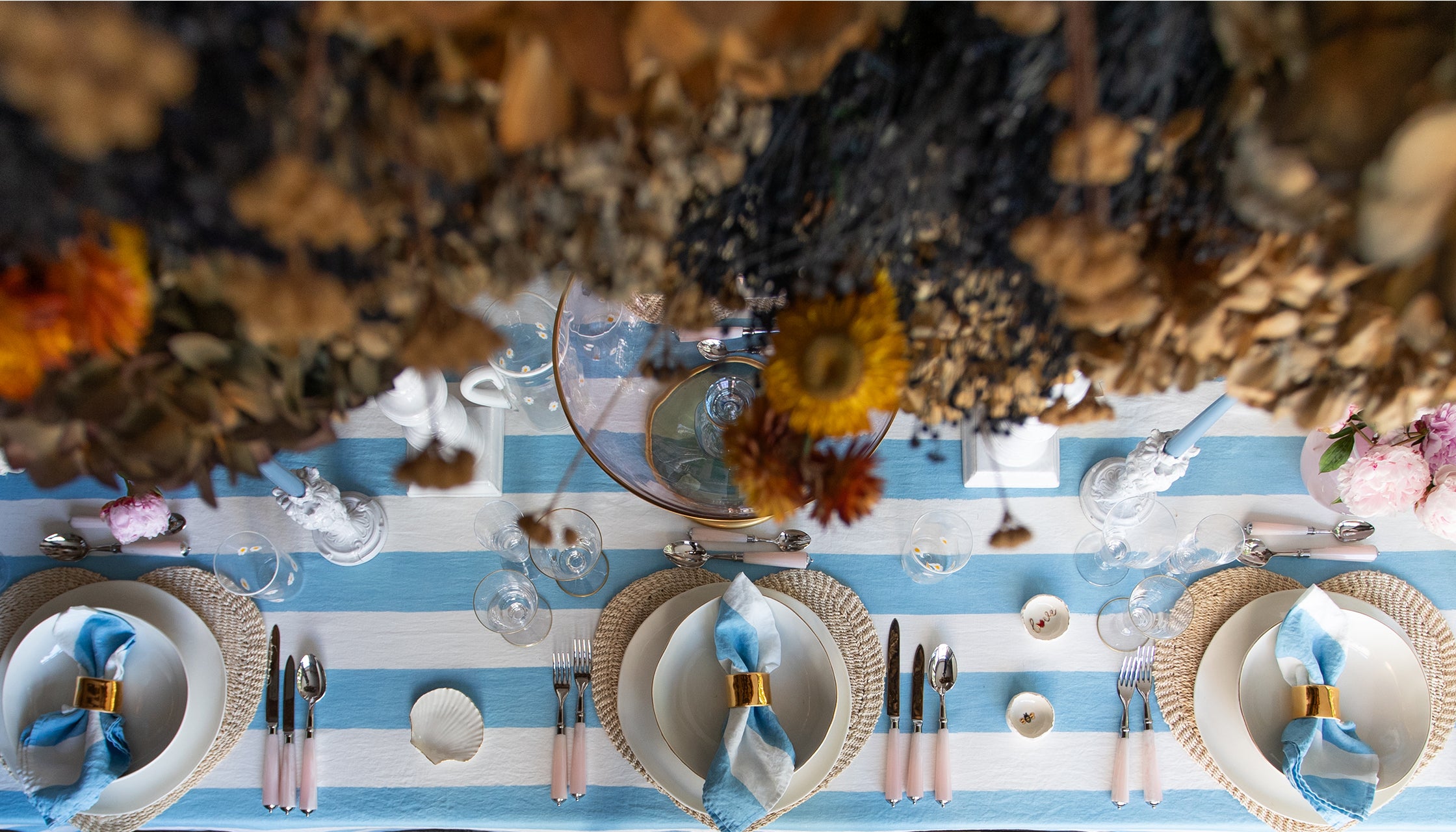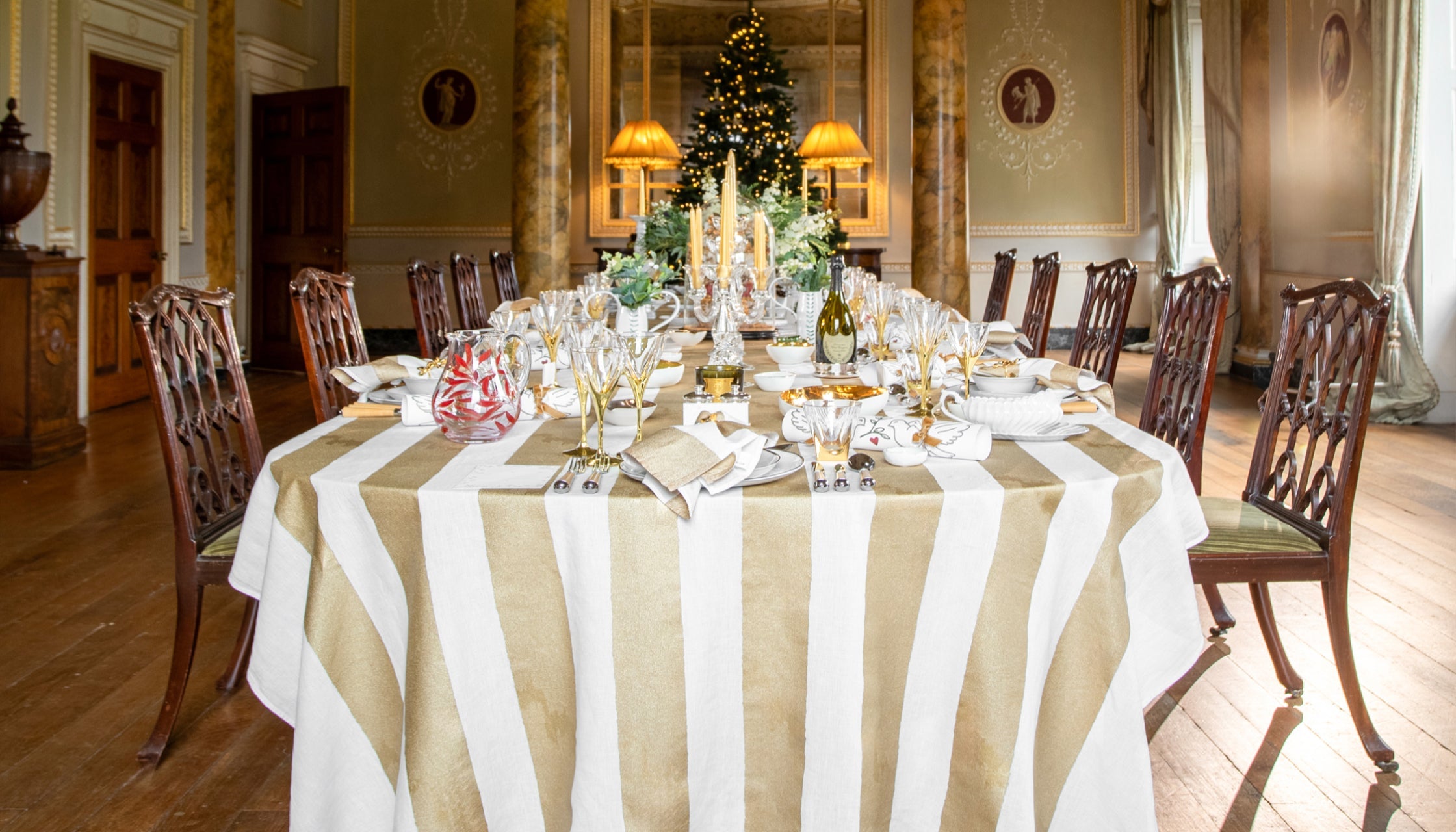 • 'Stripe' Screen Printed Linen Tablecloth in Gold 'Stripe' Screen Printed Linen Tablecloth in Gold