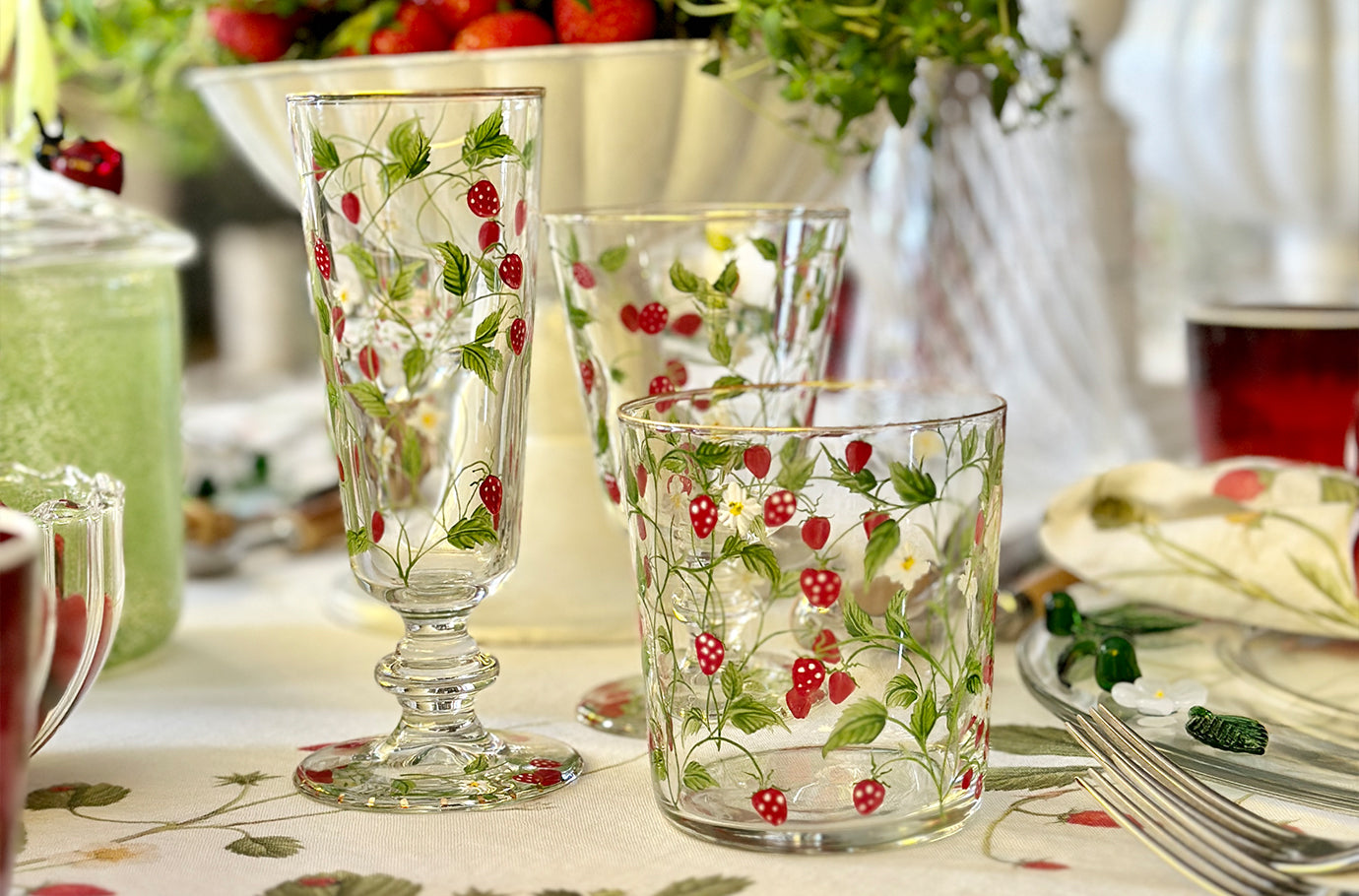 Inspired by the delicacy that are wild strawberries, this design is both charming, whimsical, and sure to inspire some nostalgia amongst those at your table this summer.