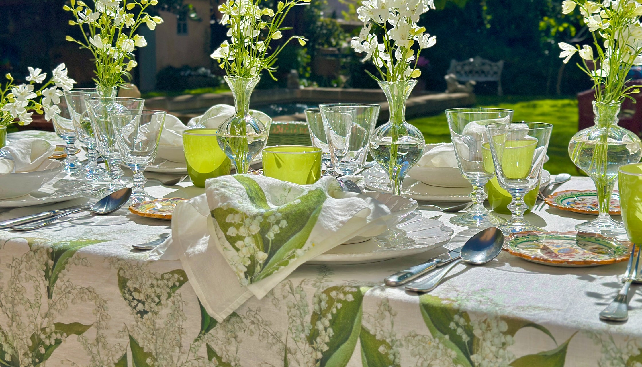 • Lily of the Valley 'Muguet' Linen Tablecloth Lily of the Valley 'Muguet' Linen Tablecloth