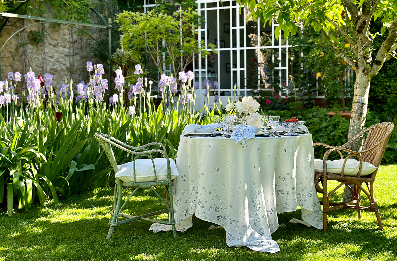 Bring the essence of your favourite aromatic herbs to the table with this botanical inspired round tablecloth, crafted from 100% pure French linen.