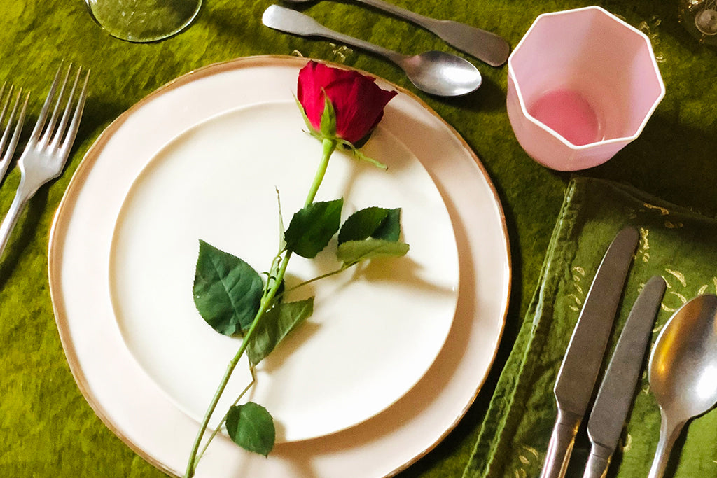 We can only describe yesterday's deluge as utterly dreary and so we cheered ourselves up the best way we know how... we set a table for two and made the most of being indoors. Wet weather is just another reason to get creative with a table setting after all!
