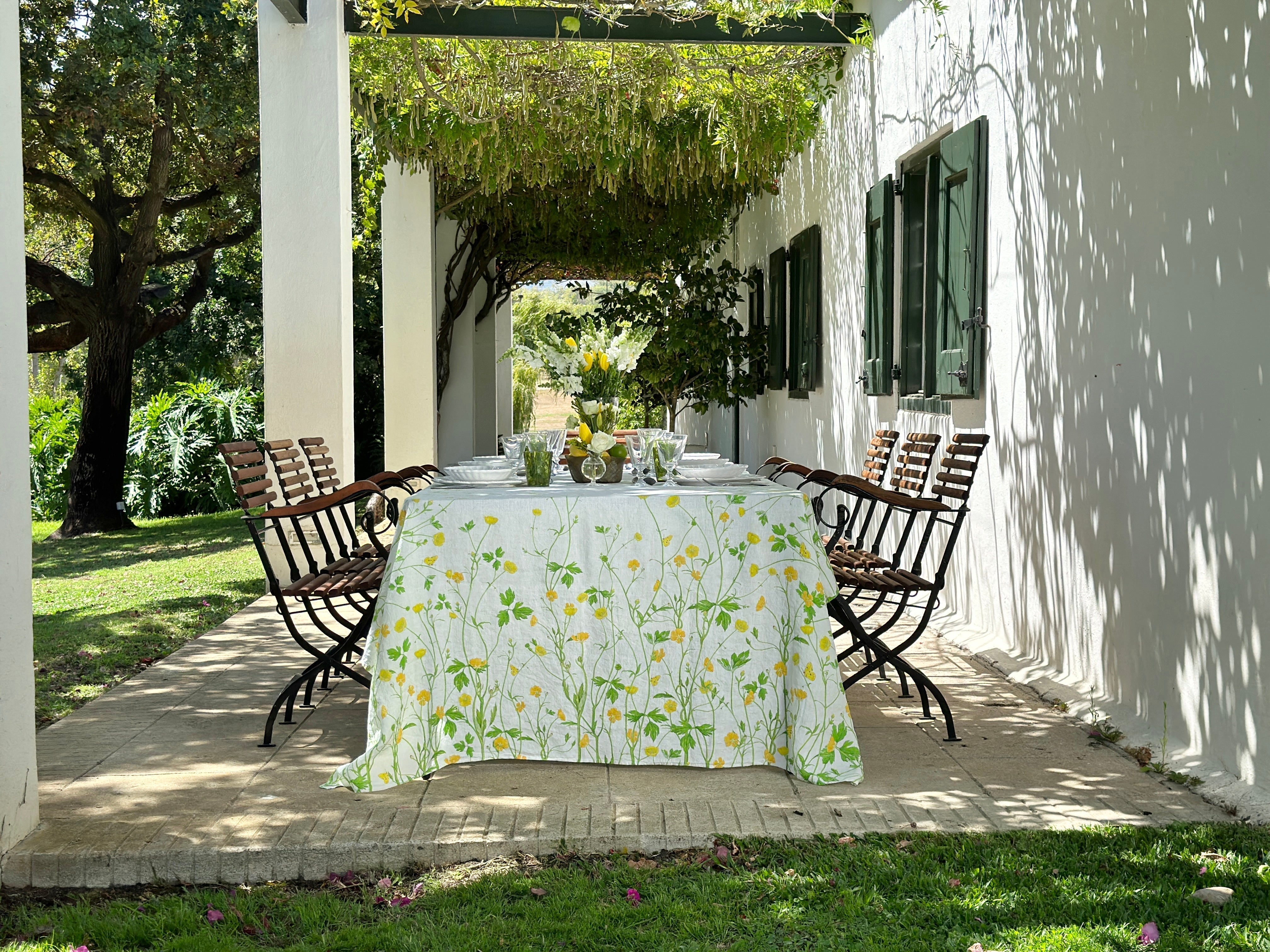 Crafted from 100% pure French linen, the Buttercup tablecloth and matching napkins are made to brighten every gathering from lazy lunches under blue skies to candlelit dinners that stretch long into the evening.