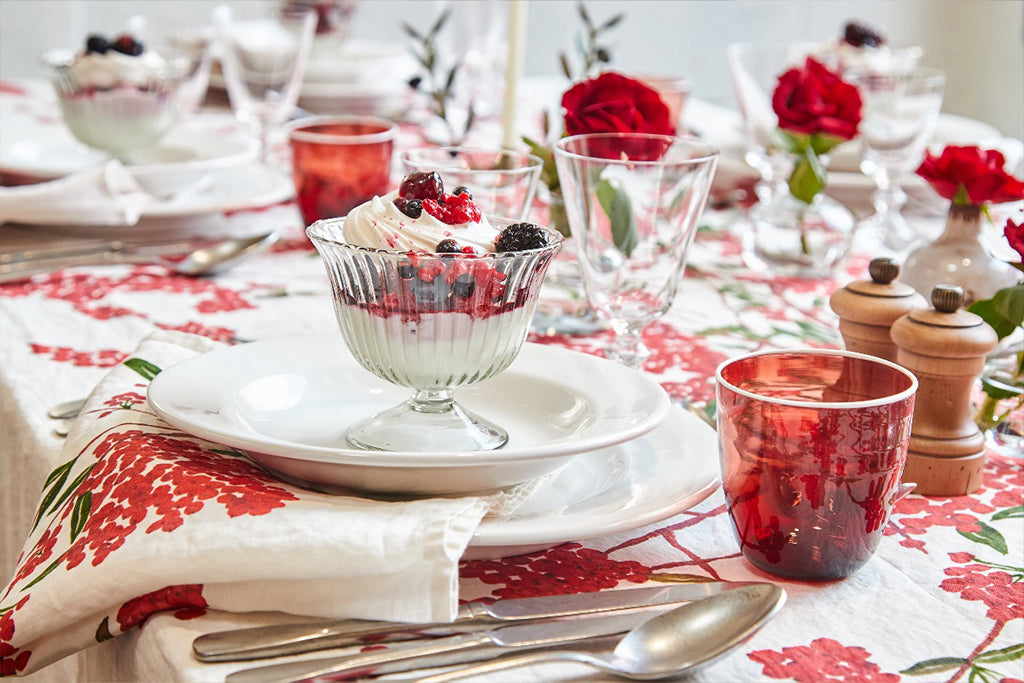 with summer berries and delicious dessert, the red and white design looks nearly good enough to eat.