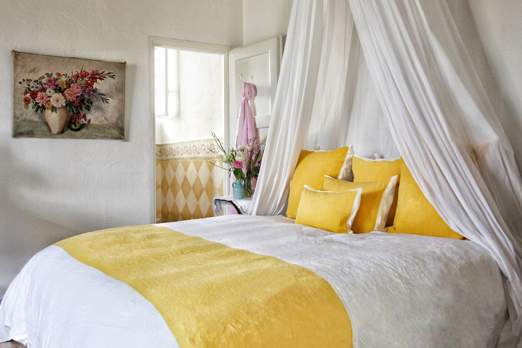 ['S&B Classic' Linen Bed Set Hand Painted in Lemon Yellow]