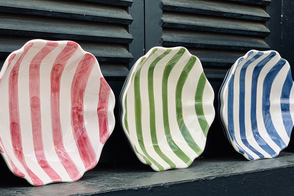 Say hello to our newest collection of dinnerware - sweeping stripes hand painted in four spirited shades embellish dinner plates, side plates, soup bowls and serving bowls. Each is hand-painted in Italy and is entirely exclusive to Summerill & Bishop.