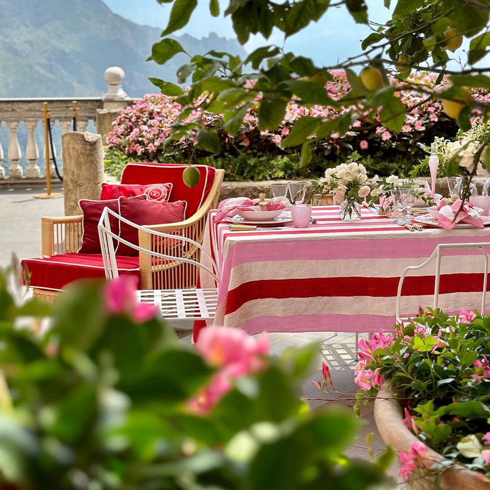 'Stripe' Linen Napkin in White & Rose Pink, 50x50cm