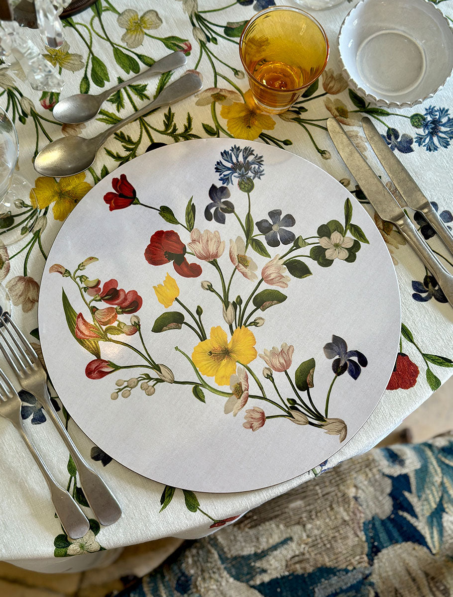 Petals, stems, blossoms from John Derian’s 18th and 19th-century botanical decoupage reimagined in Botanical Wildflower, blooming in colour and quiet charm. Let colour, form and romance gather. A table to return to, time and again.