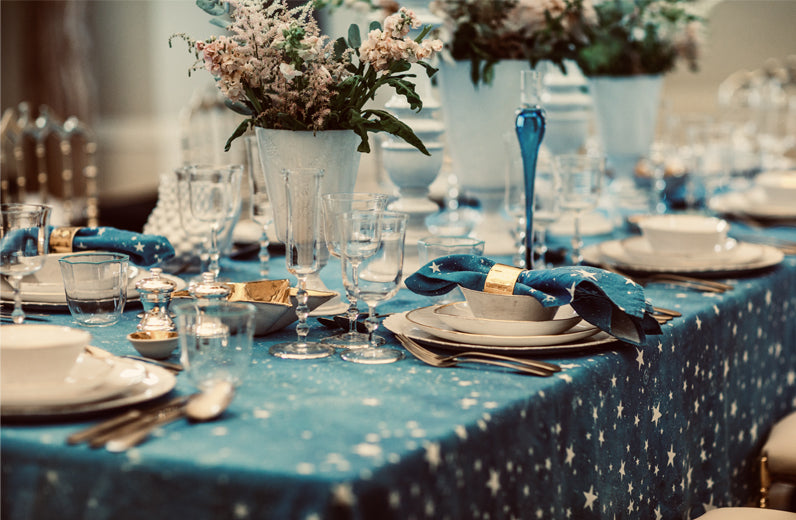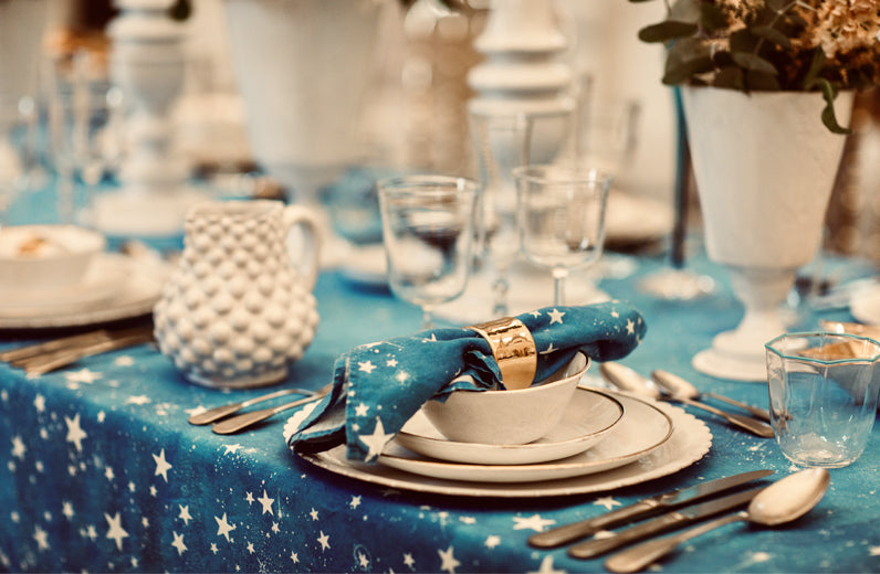 Let our Celestial linens transport you across the midnight sky: dine amidst colours of the cosmos, celestial stars and blue skies.