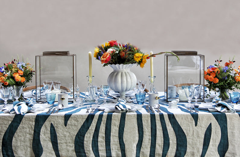 Blue 'Zebra' Tablescape