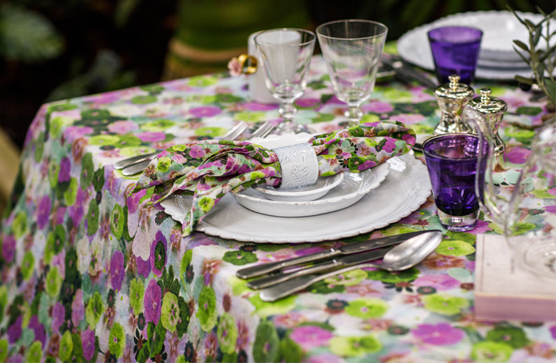 'Le Marché aux Fleurs' Linen Tablecloth in Purple, Pink and GreenRegular price