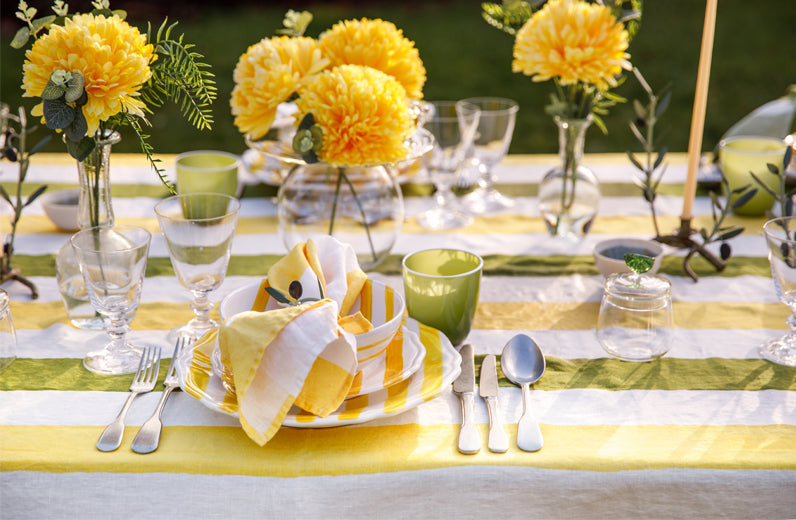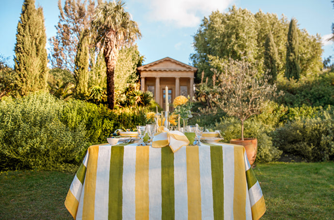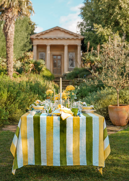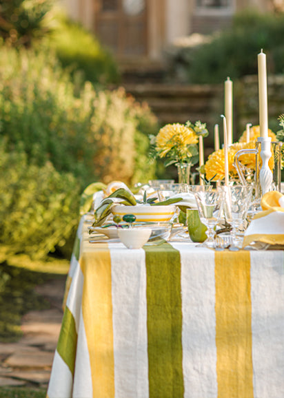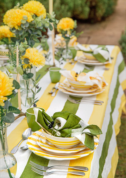 'Stripe' Tablescape in Avocado Green & Lemon Yellow