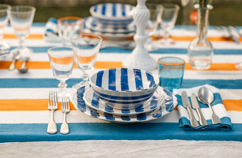 'Stripe' Tablescape in Sky Blue & Orange