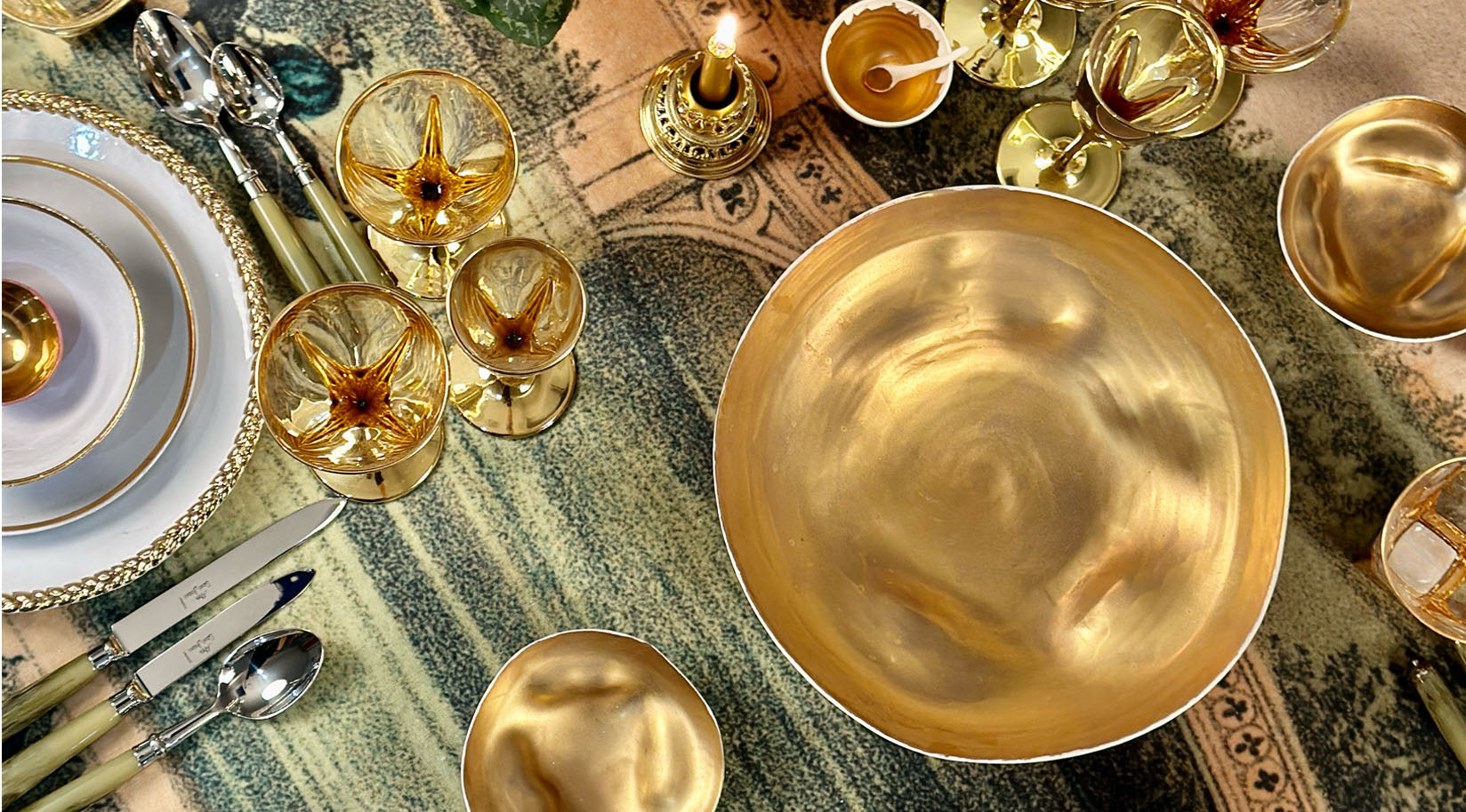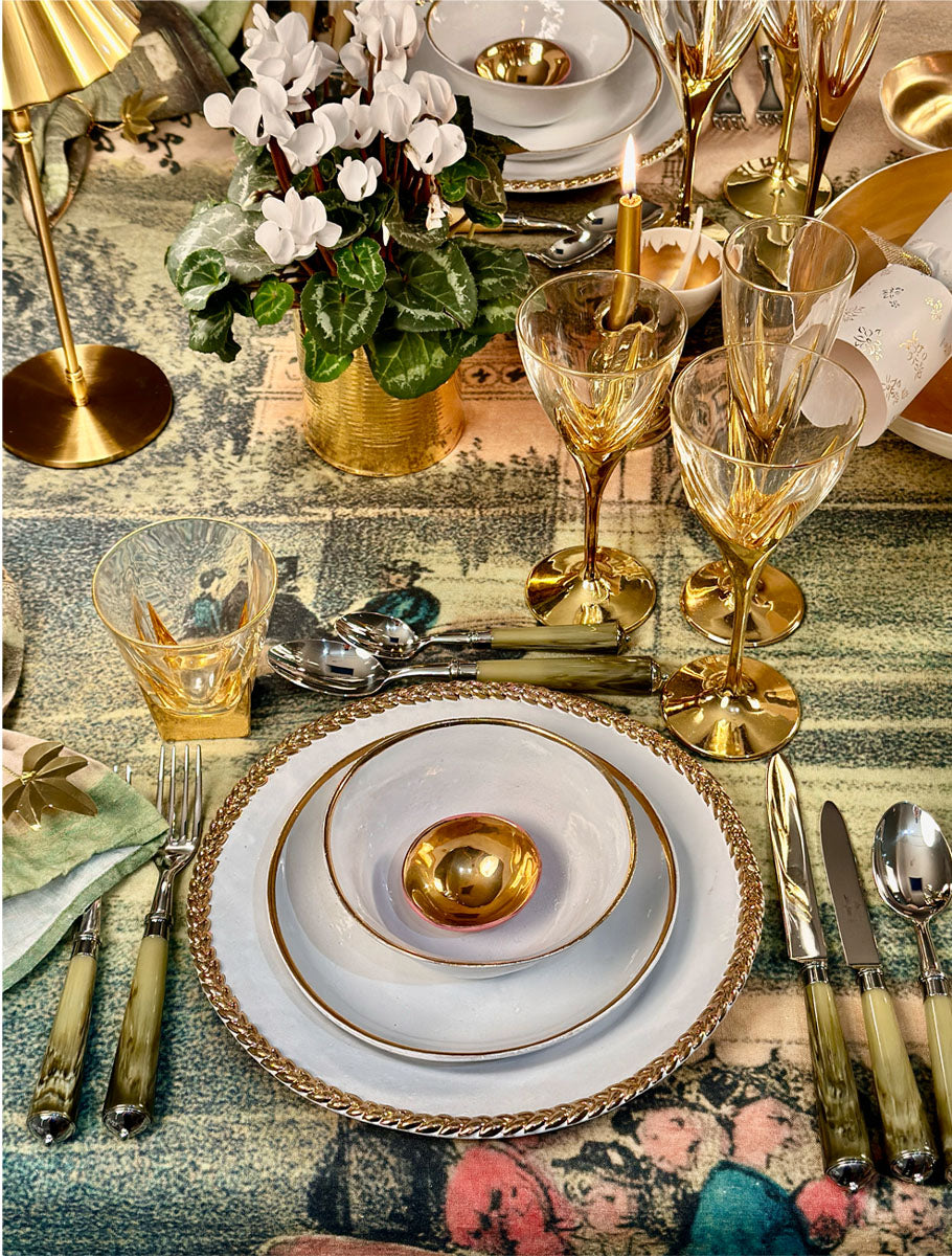 Set the scene for festivities with a golden glow. Our ‘Central Park’ table linen, layered with gilded dinnerware, glassware and shimmering accents, turns every gathering into something extraordinary — and brings a little slice of New York nostalgia to those celebrating far from home. Go for gold this season with Summerill & Bishop: The World’s Most Beautiful Tablecloths.