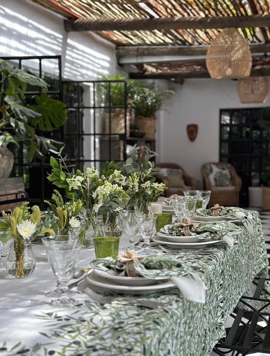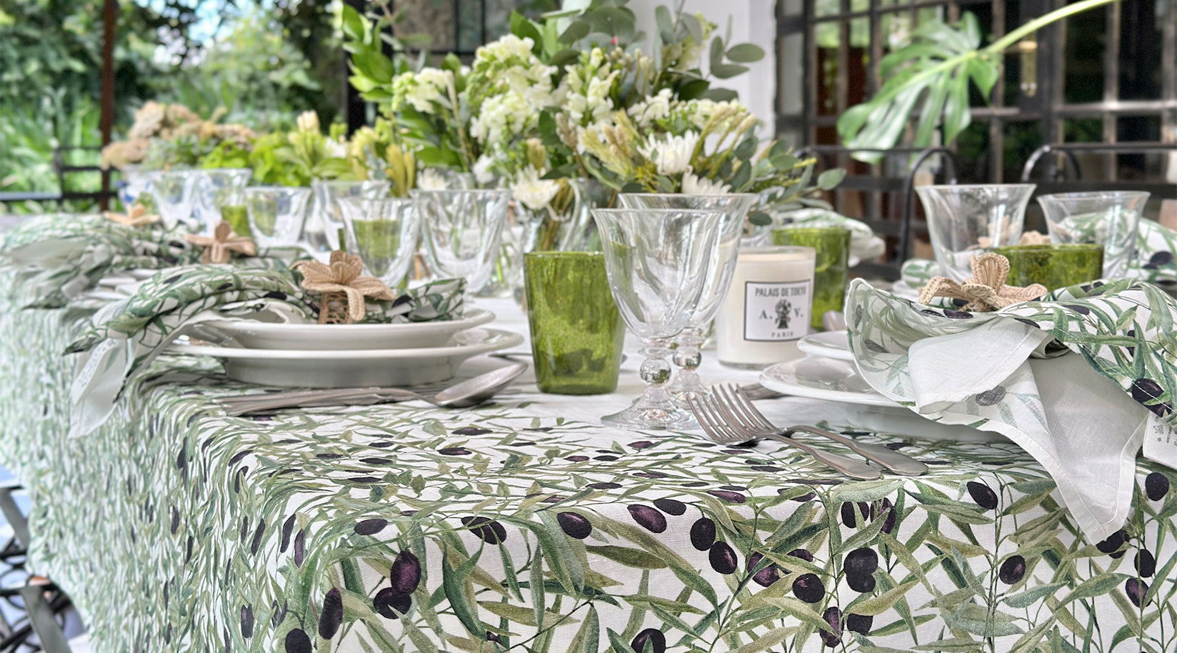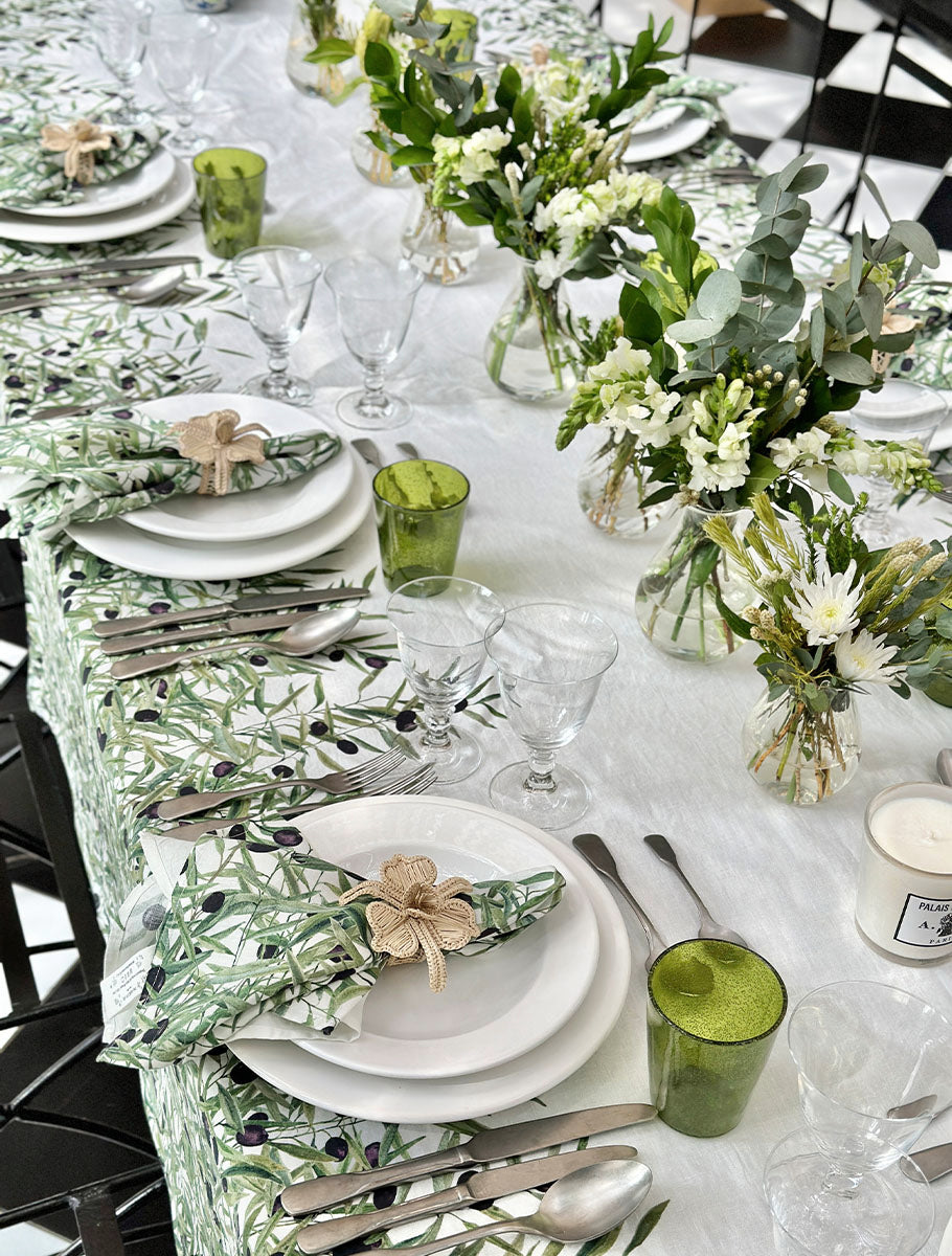 A new classic for the table – discover L’Olivier, the ultimate summer linen collection. Olive branches, full and fruitful, fall around the edges of this design, in lush and leafy shades of green. A timeless look for the table, that will look fresh season after season.