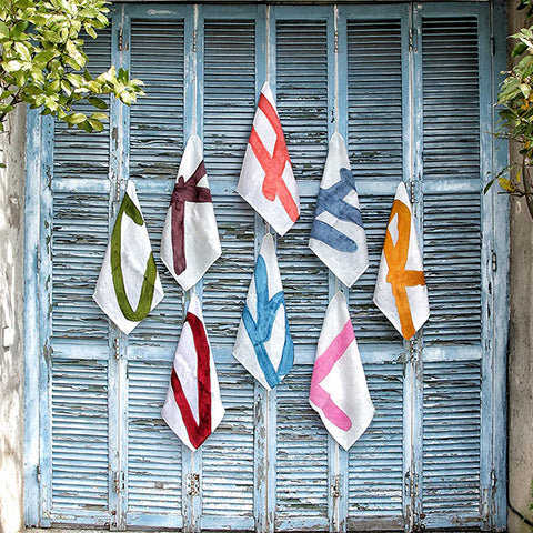 Luxury napkins to match all our signature tablecloth designs: from handprinted, to classic florals and modern designs perfect for everyday entertaining. Whatever you're after (be it white linen napkins with delicate patterns or brighter and more colourful designs - think pink linen napkins, blue linen napkins, rainbow napkins, frivolous florals) we promise not to disappoint. Feel free to browse our luxurious napkin range to your heart's content.