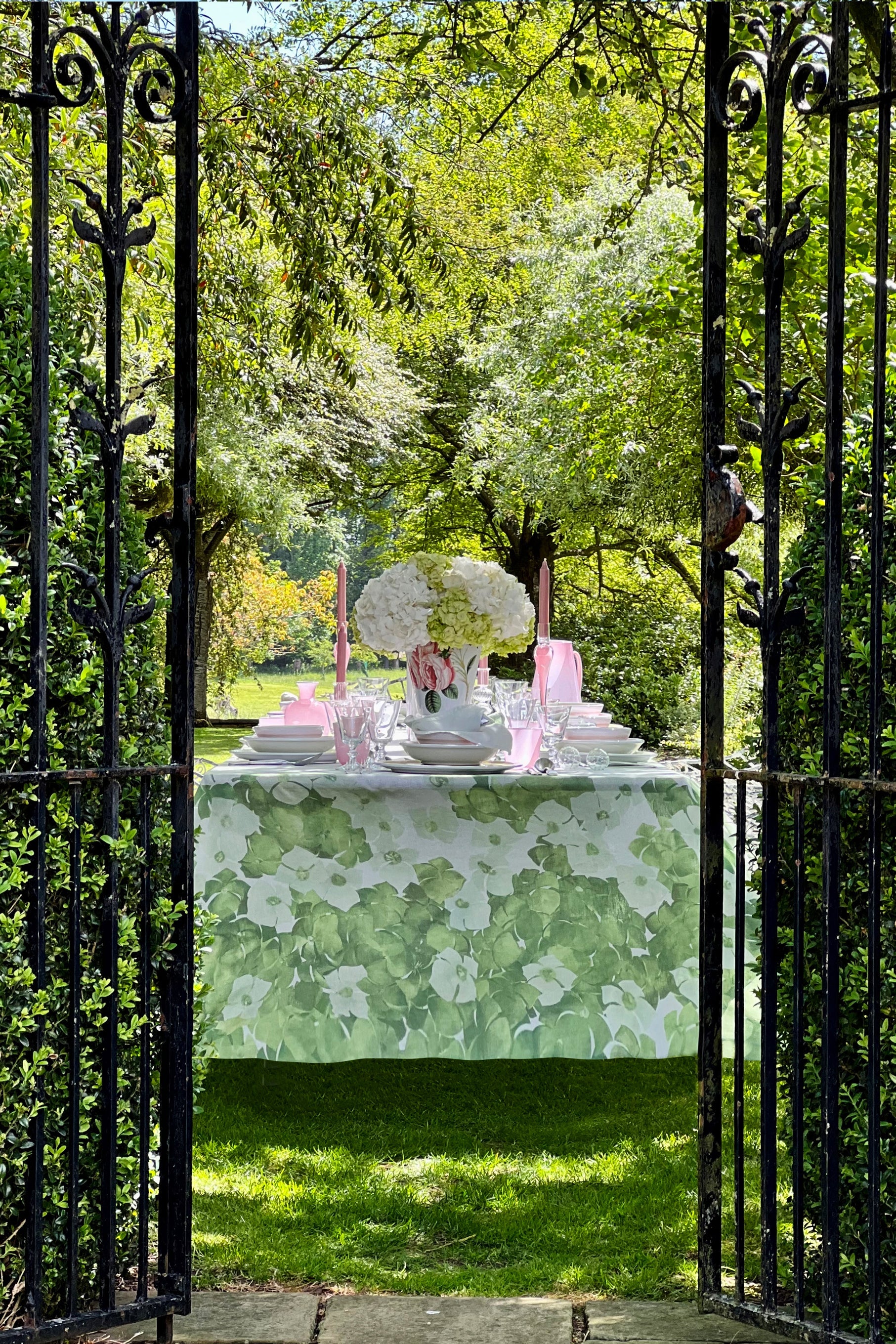 Designed in collaboration with textile artist Chiara Grifantini, the collection draws inspiration from the abundant hydrangeas blooming in Notting Hill’s communal gardens.