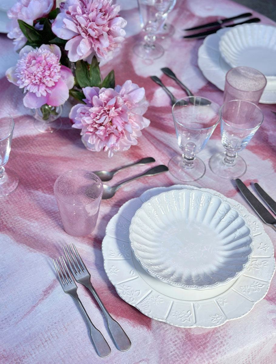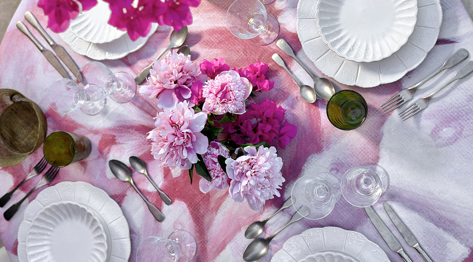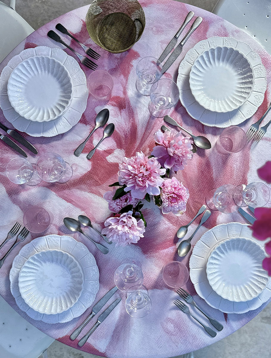 The Peony tablecloth showcases a stunning design of a blossoming pink peony, creating a captivating centrepiece for your dining experience. It celebrates the beauty of nature with soft, vibrant hues that add elegance and joy to any gathering. Peony exudes luxury and timeless style, making it the perfect way to elevate your table setting.