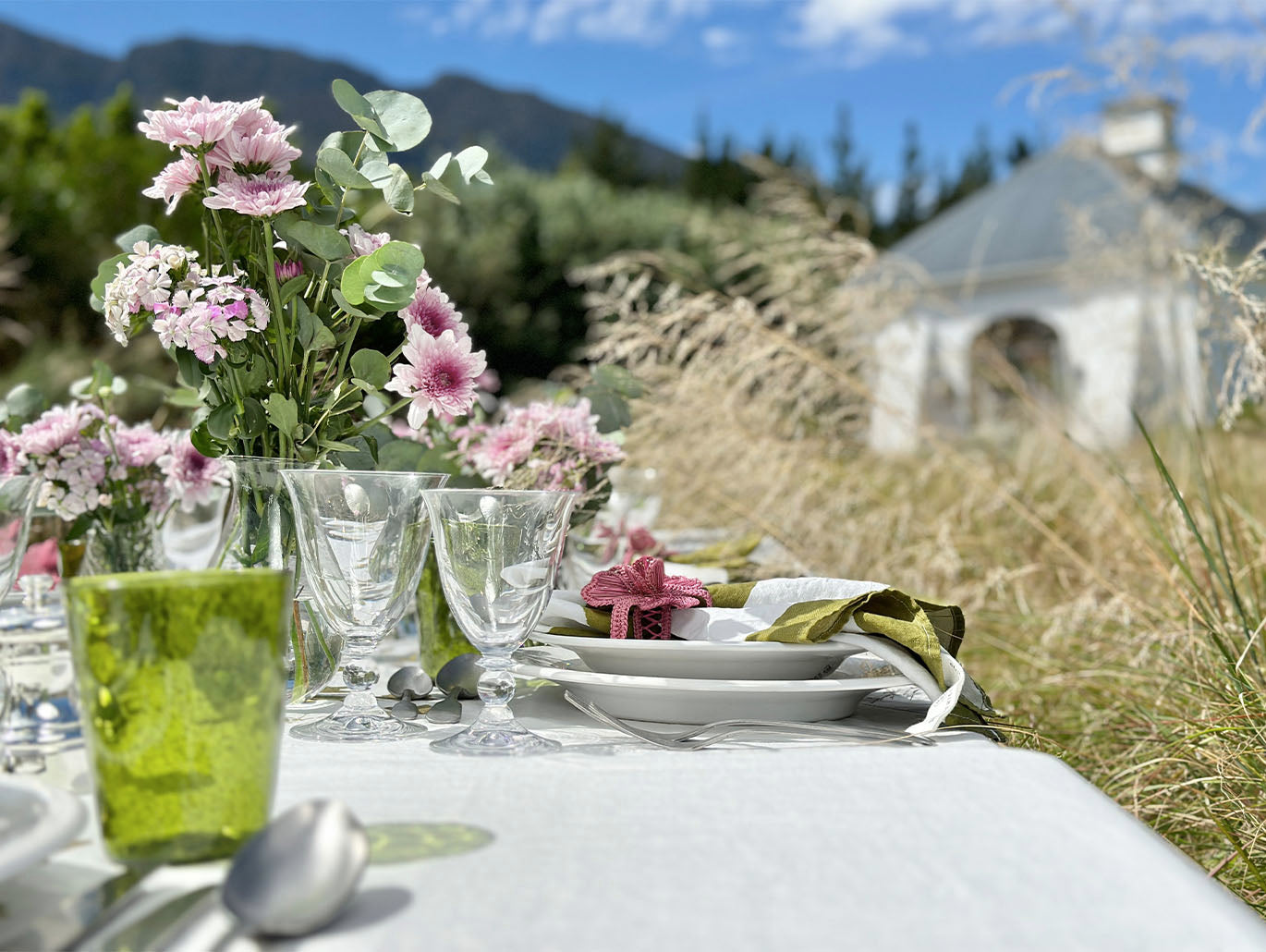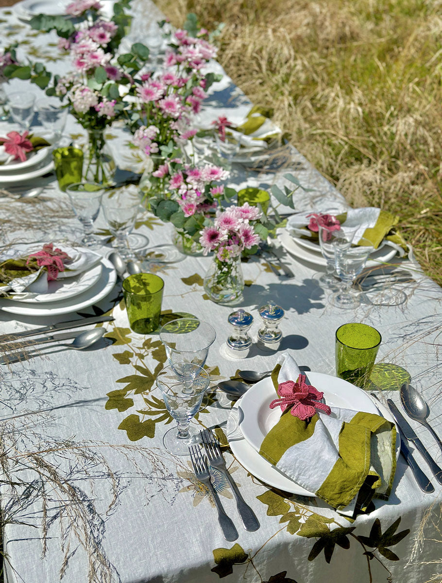 Blossoming amidst trailing leaves and stems that grow along the centre of the tablecloth, each exuberant Passiflora is like peering into a kaleidoscope; petals, anthers and stigmas permeated with mesmerising bands of colour immediately capture your gaze. Enticing you to take your seat at the table, like a hummingbird to Passiflora. This 100% pure French linen tablecloth is perfect for elevating your table setting and is effortless and elegant with aplomb. Perfect for those who prefer subtle botanical accents and slight colour.