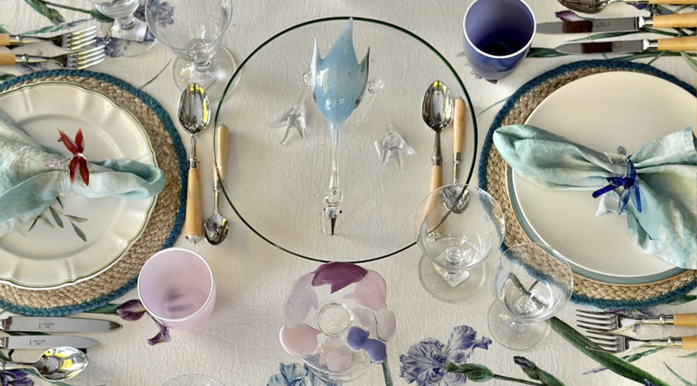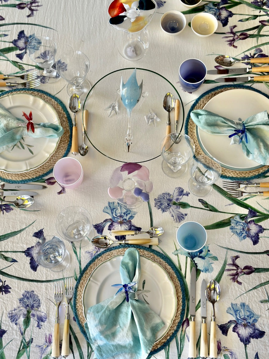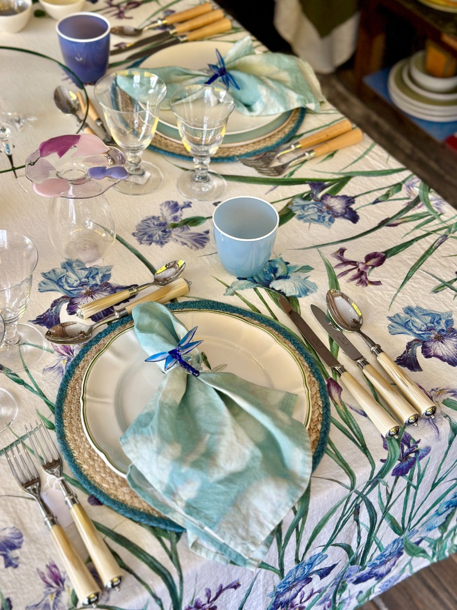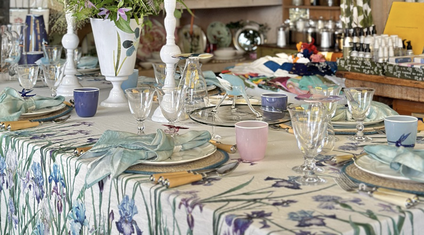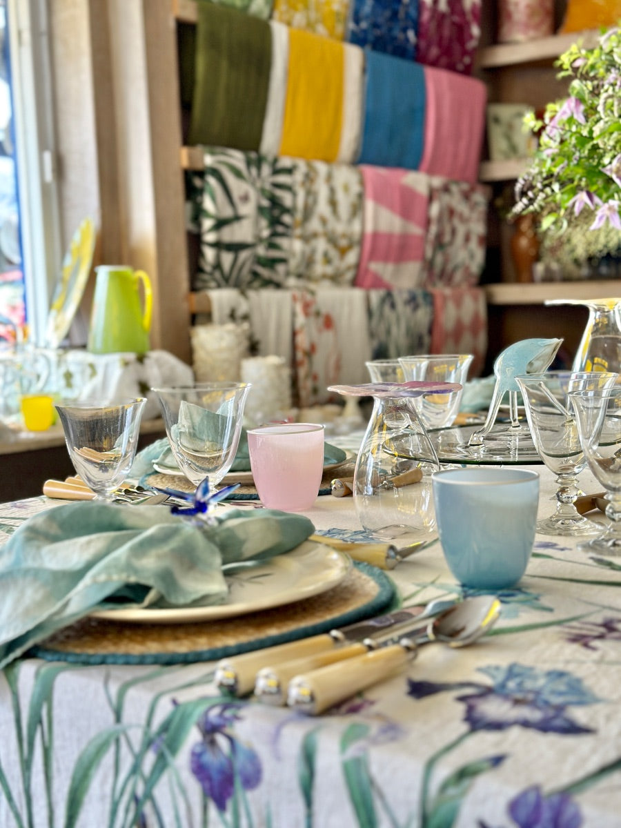 Our brilliant shop team have done it again with their table setting prowess. Adept at coming up with creative combinations, this week, we were greeted with a calming scene of painterly prints upon happening into the store. A meadow of iris flowers in their gentle tones set against the rolling clouds of a picture perfect sky.