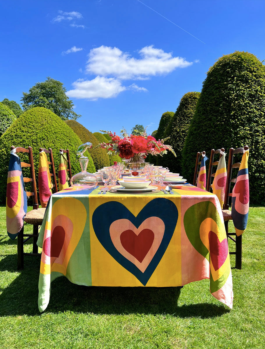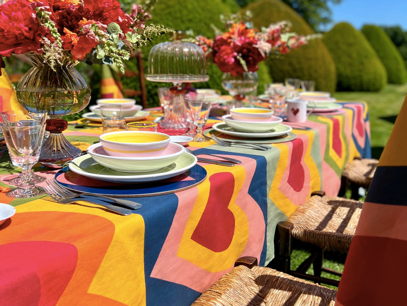Discover our signature S&B heart motif, imagined in a patchwork of riotous, joyful colour. Designed to celebrate a summer of love and the coming together of friends, family and lovers around the table.