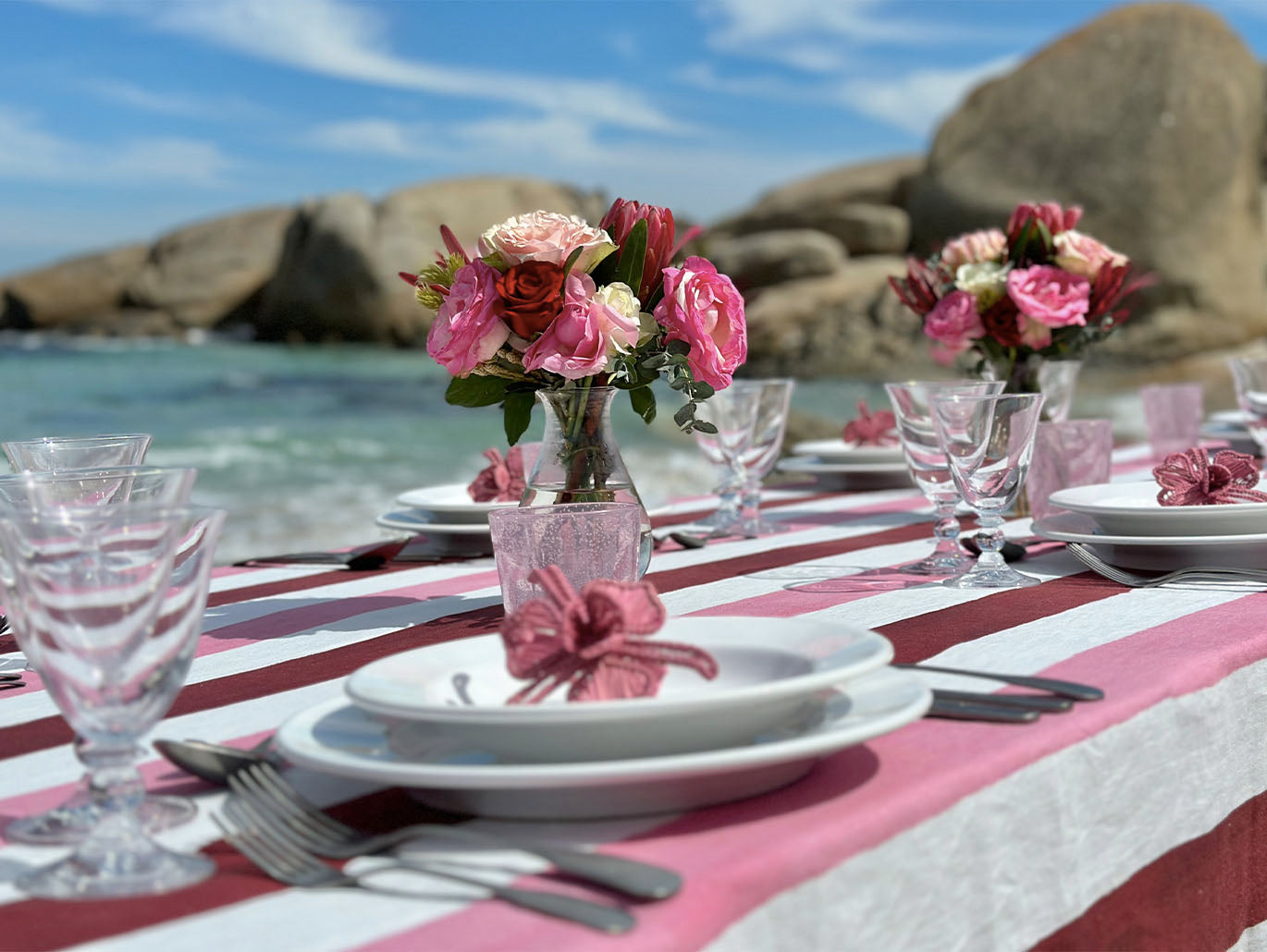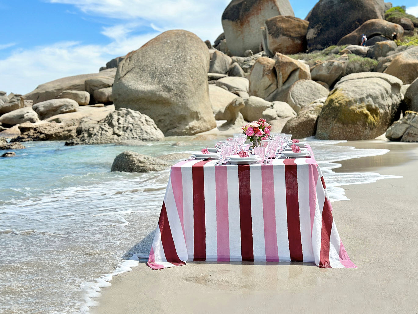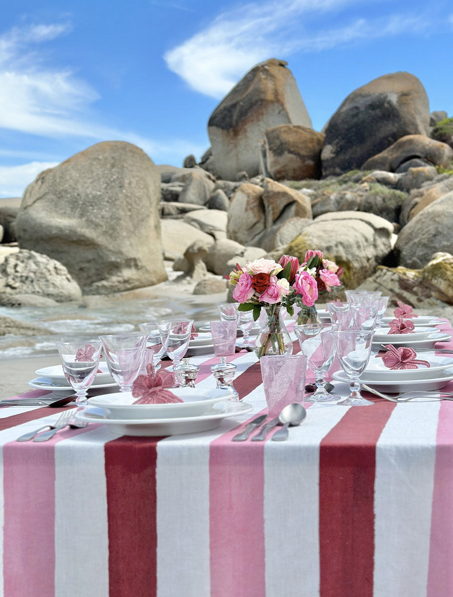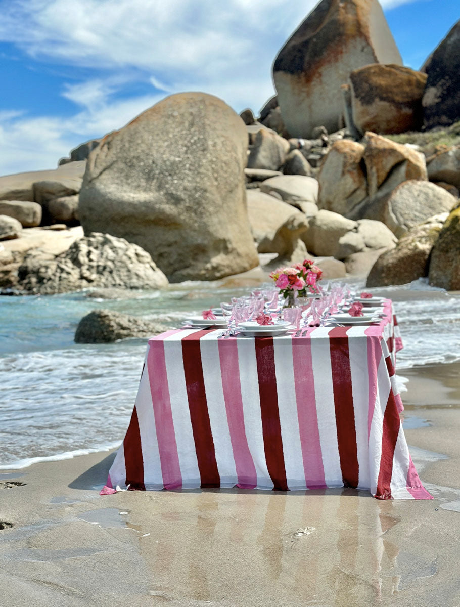 A daring and darling duo for the table...Since 2021, we've been sweeping hearts and tables with our inimitable Stripe collection, sparking ideals of travel, luxury, and nostalgia with every linear linen tablecloth and napkin. Now comes a new era of Notting Hill cool meets Riviera chic, in ravishing raspberry red and rose pink tones. Meet the new Summerill & Bishop Stripe, beautiful anywhere.
