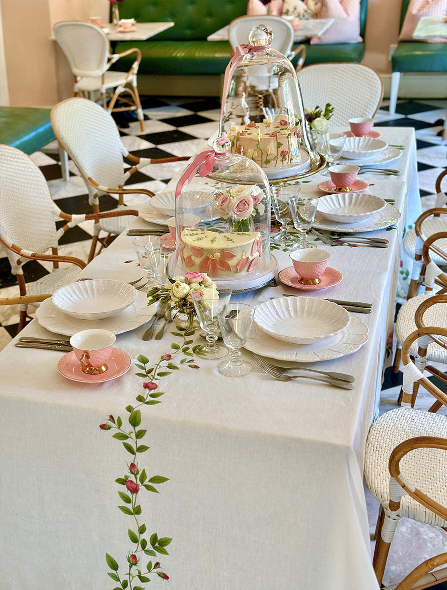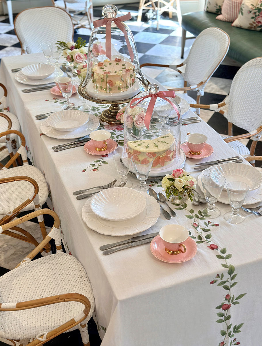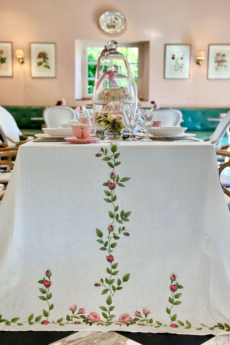 Inspired by the climbing beauty of rambling roses, this delicate trellis design evokes hidden gardens, sunlit pathways, and petals unfurling in quiet splendour. A timeless print, perfect for romantic dinners and grand gatherings alike.