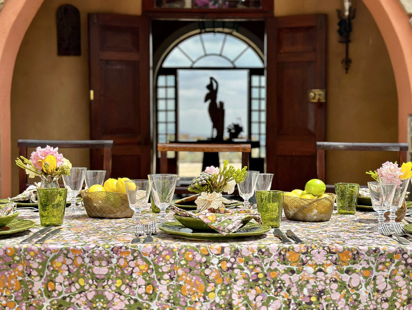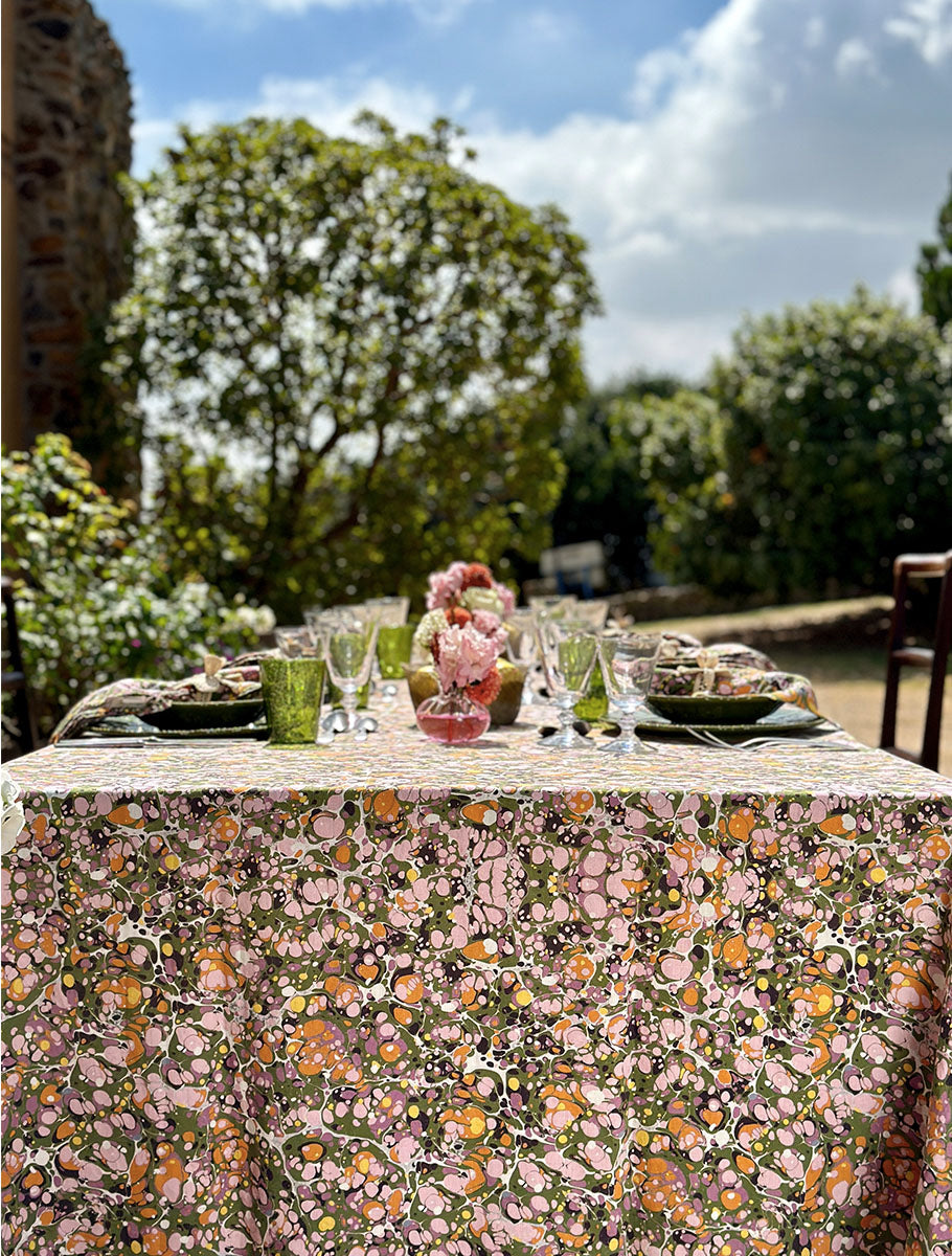 Inspired by the soft, golden light of spring, our Marble Table Linens bring a painterly charm to any setting. In swirls of Rose Pink, Orange and Green, each piece evokes the feeling of sun-dappled days, open windows and effortless gatherings. Designed for long conversations and shared laughter, this is table styling at its most joyful and light-filled.