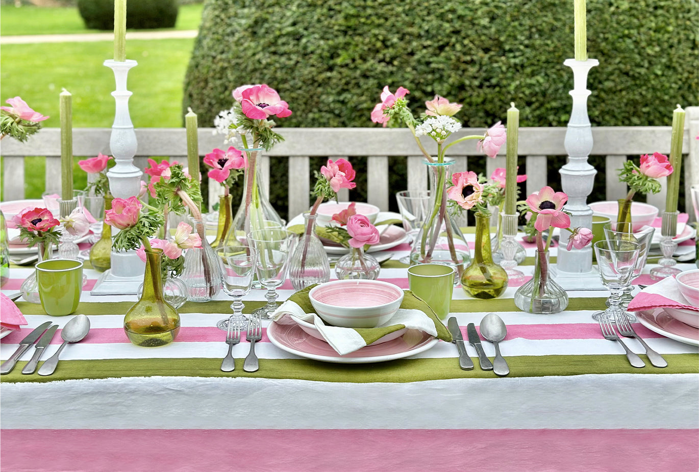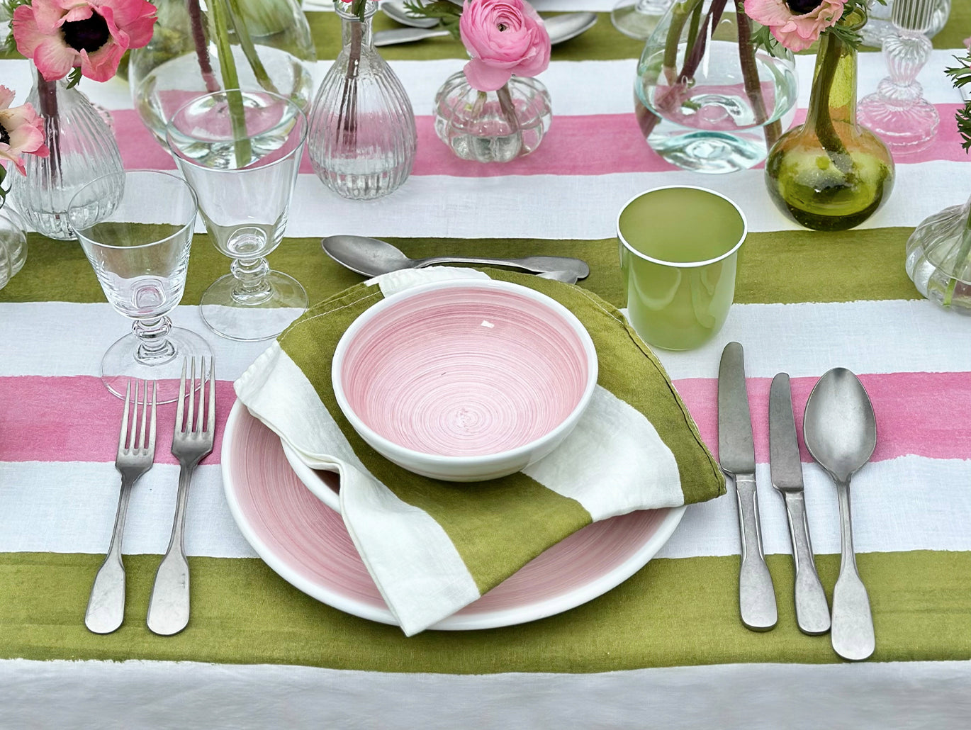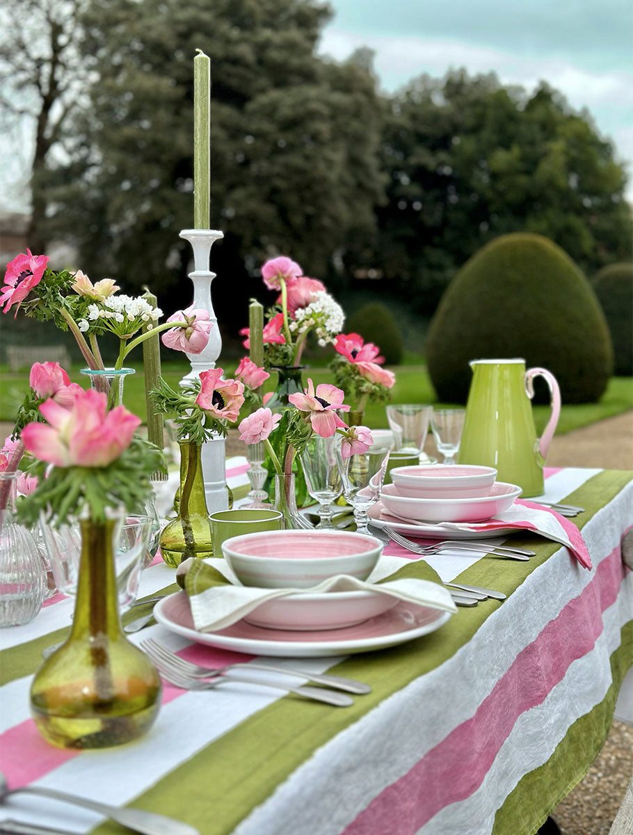 'Stripe' Tablescape in Rose Pink & Avocado Green