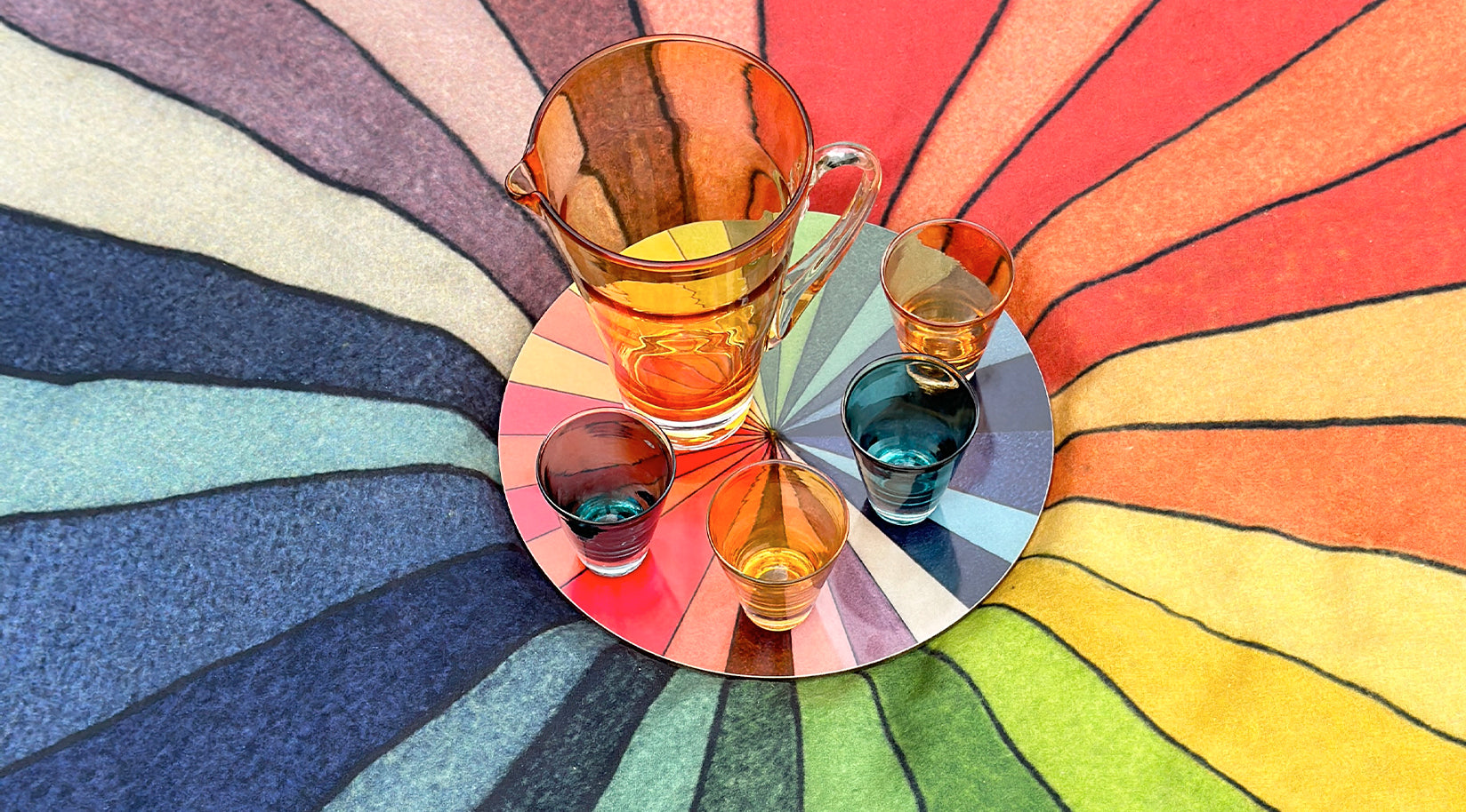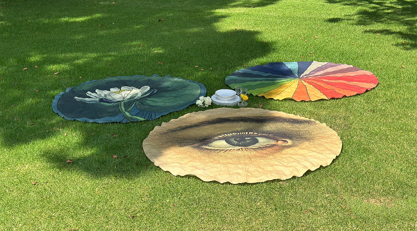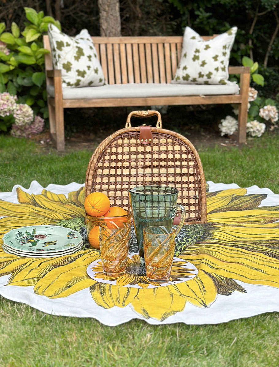 The perfect summer setting doesn’t need four walls. It begins under open skies, with laughter in the air, sunlight on your face, and linen beneath your favourite delicacies. This weekend, we’re heading outside — with our collection of Round Occasional Tablecloths (165 cm / 65 in), created in collaboration with John Derian. From the golden charm of Sunflower to the vibrant joy of Colour Wheel, the painterly calm of Water Lily and the surreal intrigue of The Eye, each design brings a little wonder to your blanket moments.