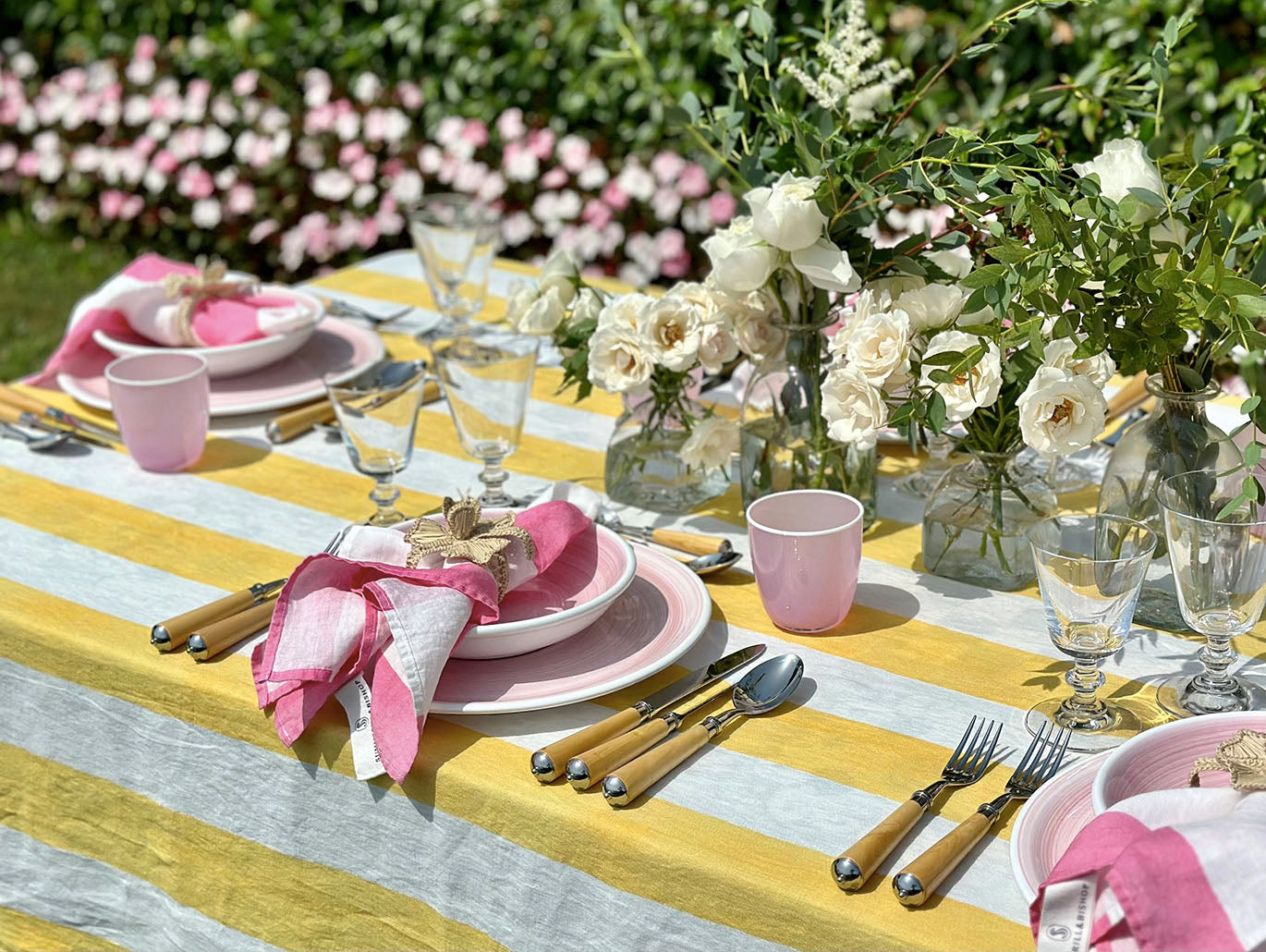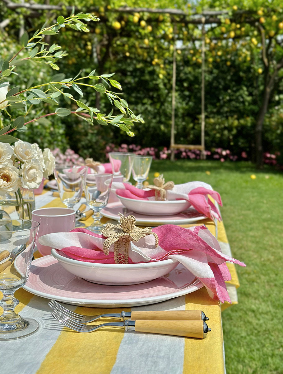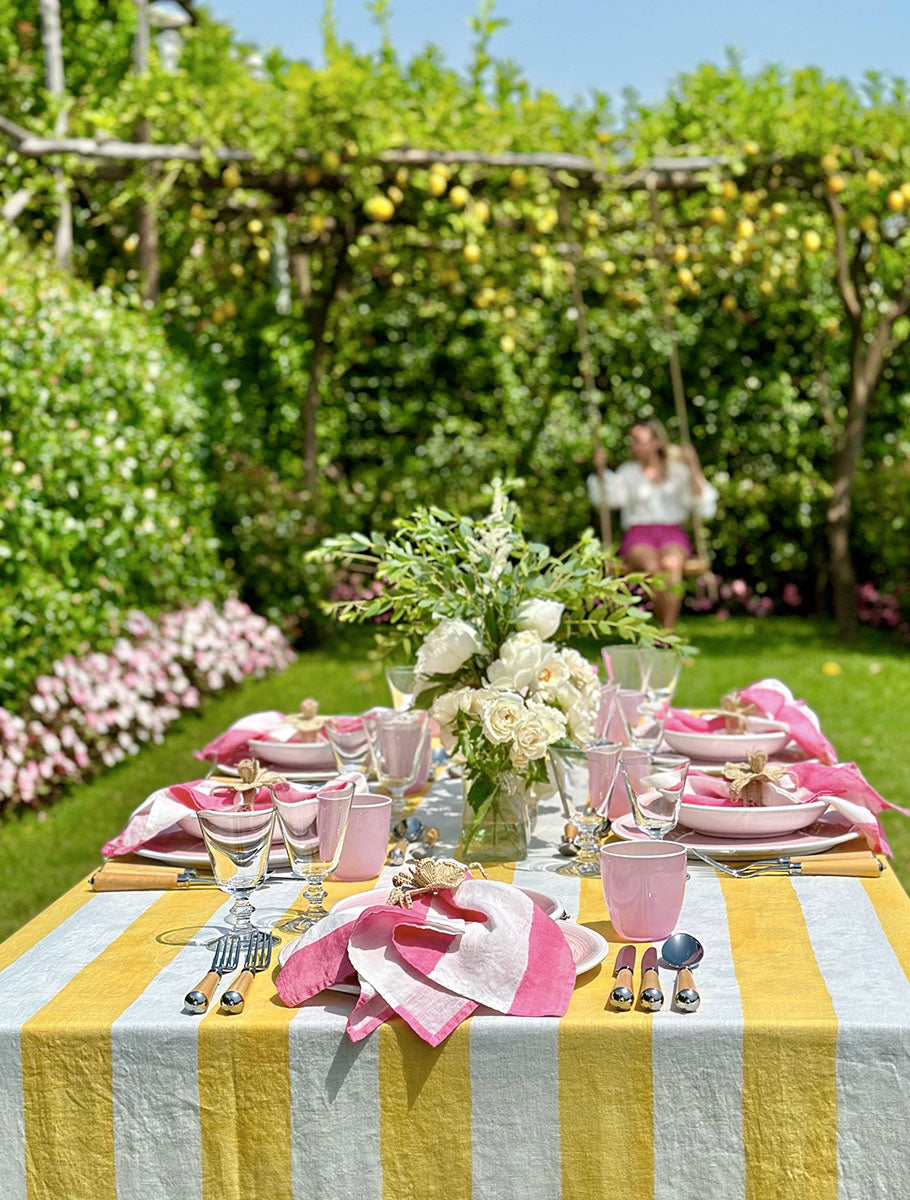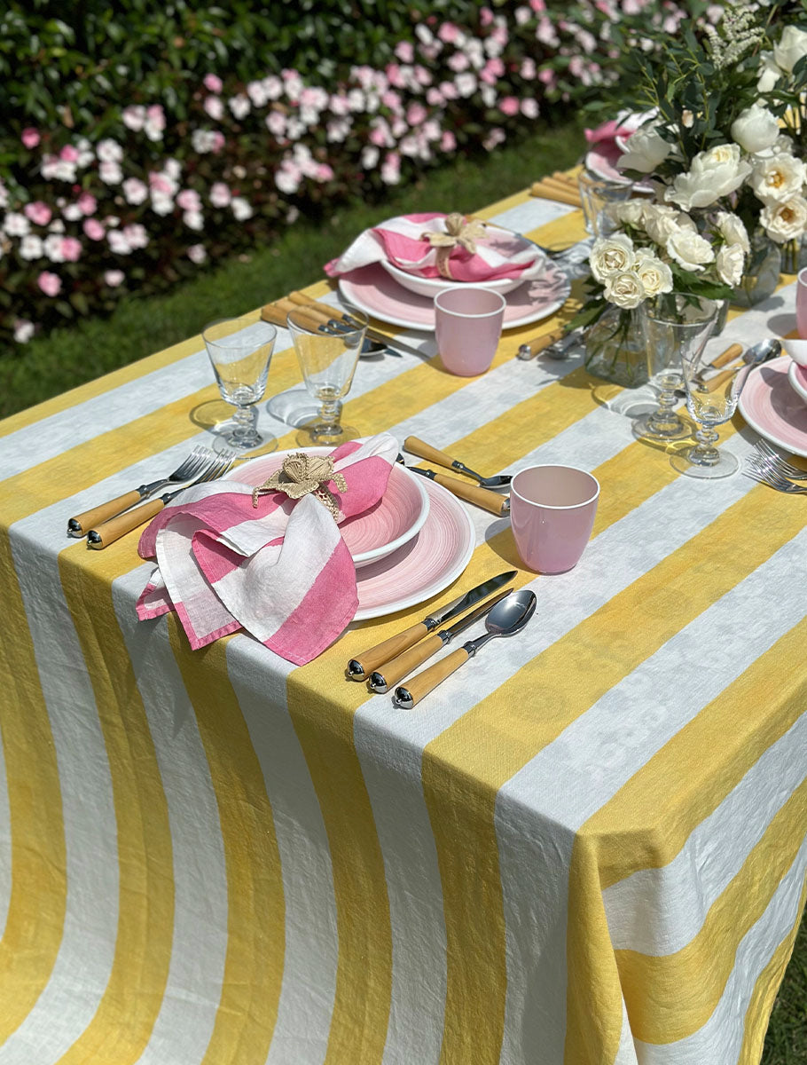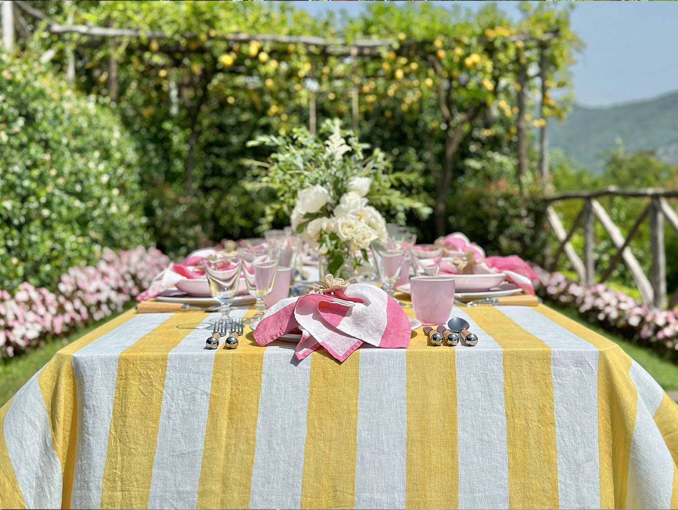 Stripe is the dream of a Mediterranean escape realised - an ode to the Tuscan coast and a journey back to childhood to revisit light-hearted memories and moments shared with family and friends. What lies behind the striped veil of linen? The sound of the sea, sand between your toes, birds singing, the scent of summer in the air and sitting down together at the table, full of joy. The collection derives its inspiration from past travels to inspire storytelling and conversation between families and friends in the present moment.
