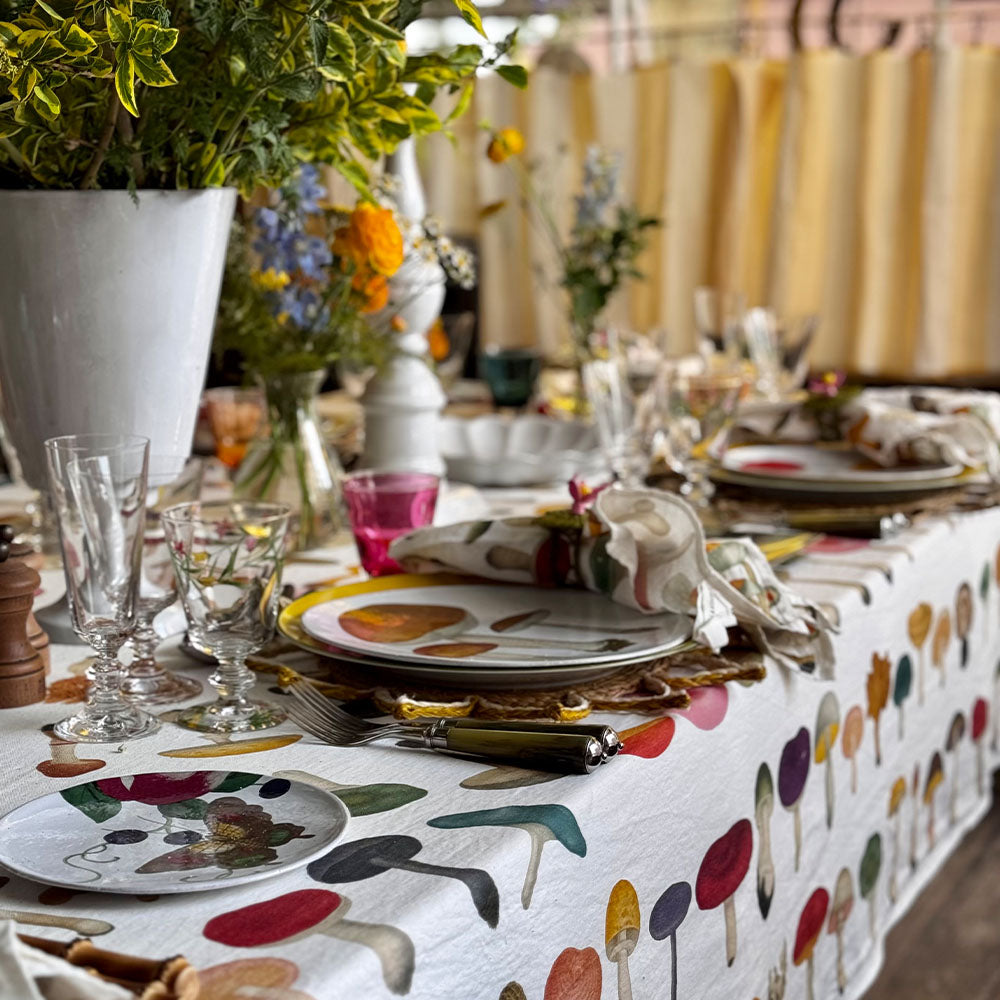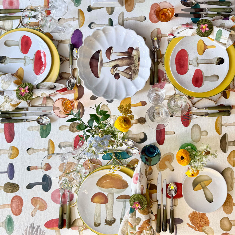 Created in collaboration with decoupage maestro John Derian, this handmade plate features 19th century inspired image of mushrooms.