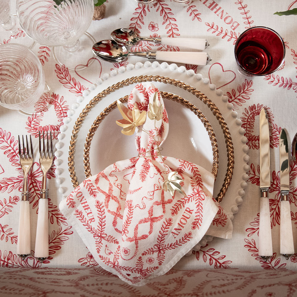 'Amour Bonheur' Linen Napkin, 50x50cm