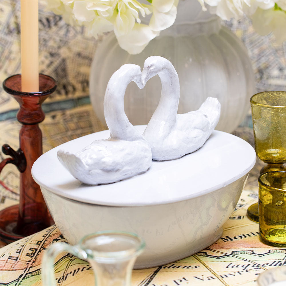 White Ceramic Cygne Swan Box by Astier de Villatte, 27cm