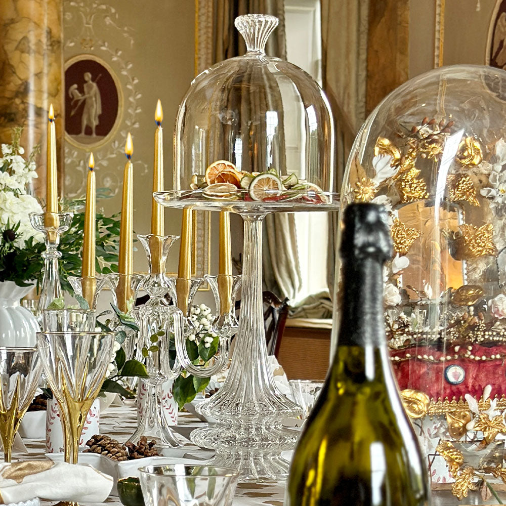 Curate your confectionery on this beautiful cake stand and dome, handcrafted in Europe by master glassblowers.