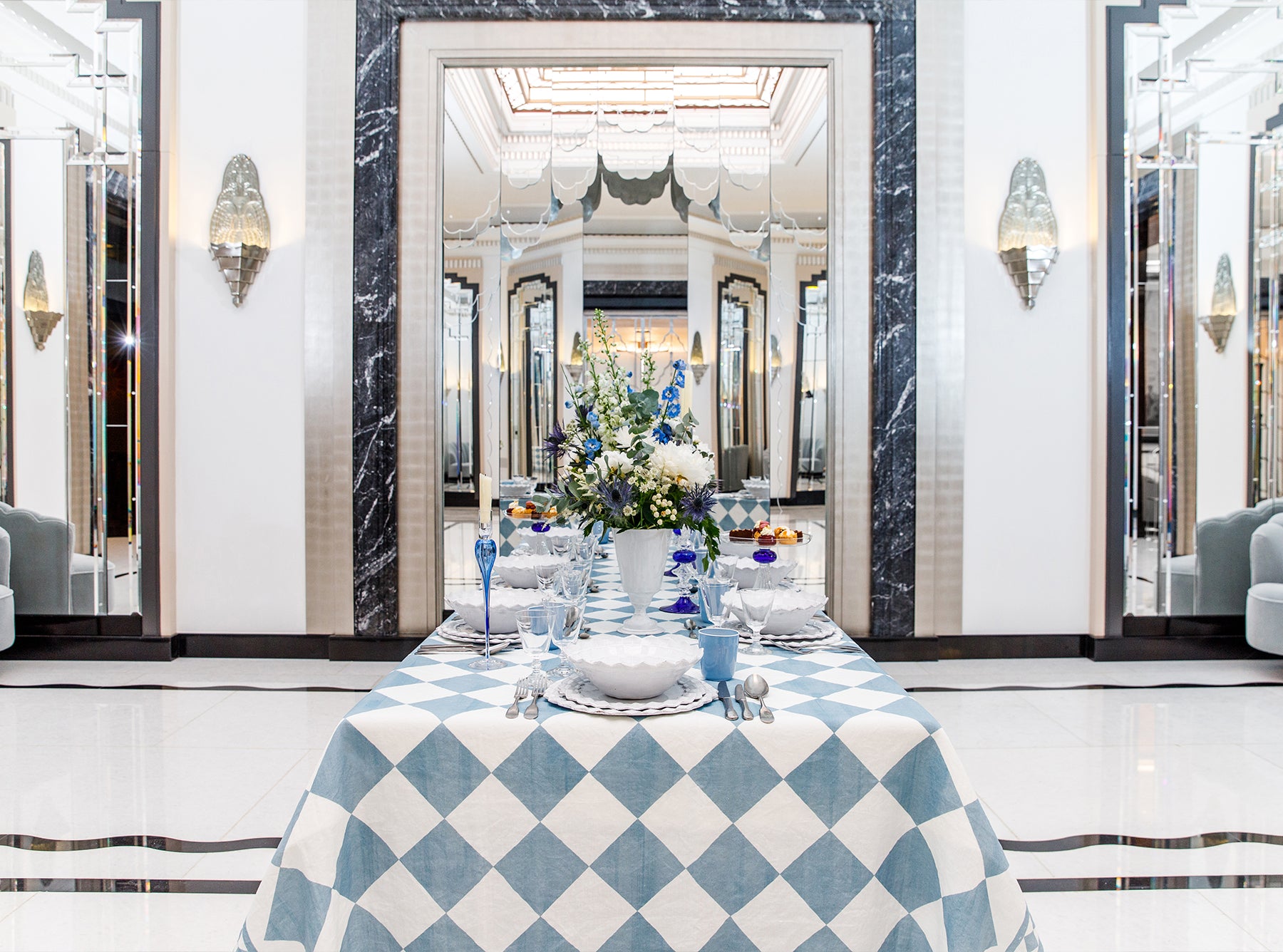 'Blue Check' Summerill & Bishop x Claridge's Linen Napkin, 50x50cm