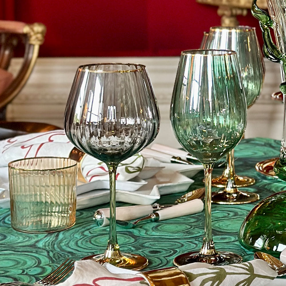 Vibrant and sculptural, this water glass features deep blue and emerald tones that shimmer as you move. Perfect for adding a bold pop of colour and personality to your tablescape.