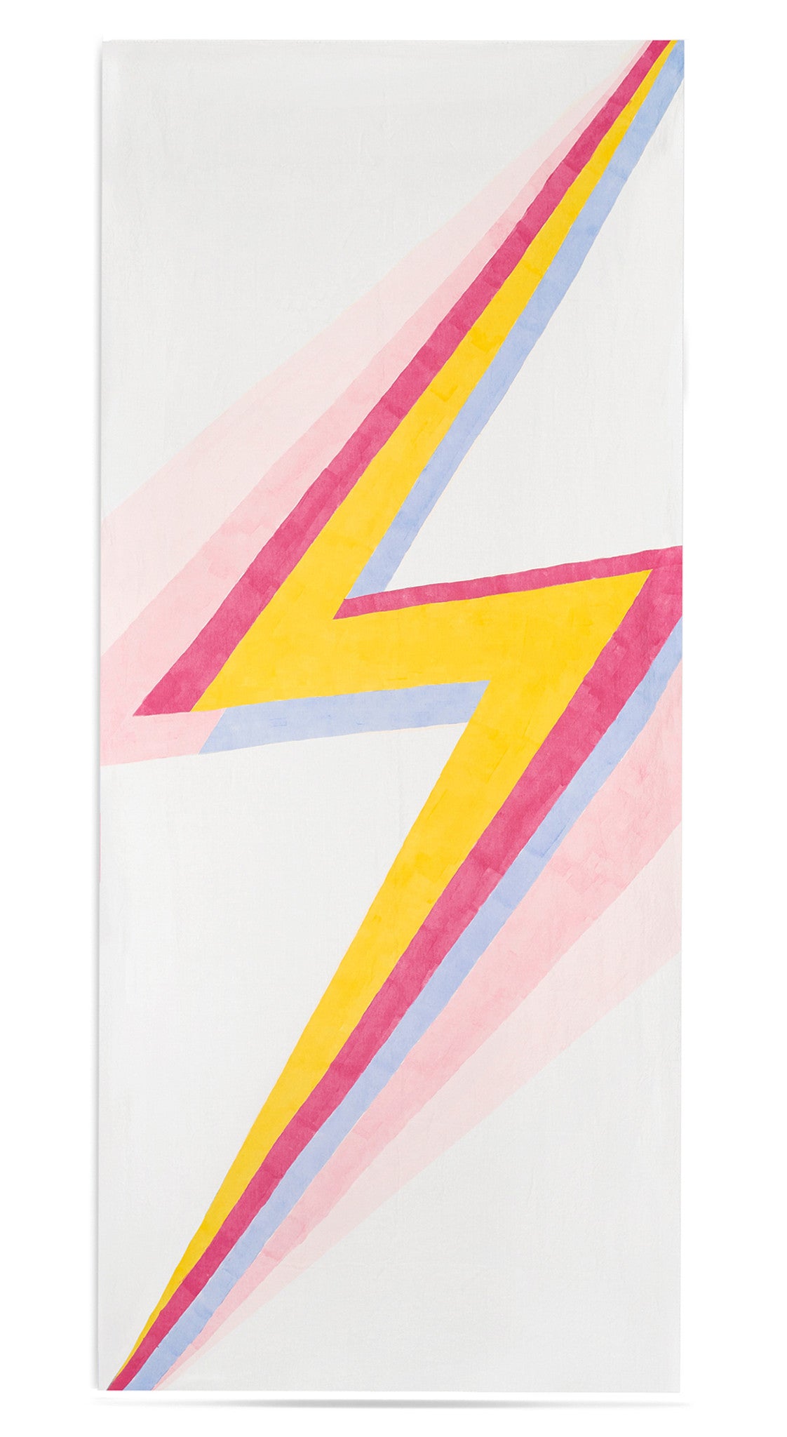 Hand painted in strokes of brilliant pinks and a bold yellow - strike an electrifying chord of colour through any room with this graphic lightening bolt tablecloth.