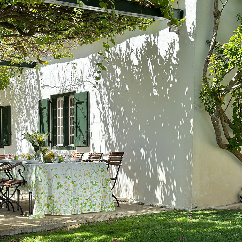 Crafted from 100% pure French linen, the Buttercup napkins and matching tablecloth offer timeless charm and versatility, effortlessly complementing any table setting, indoors or out.