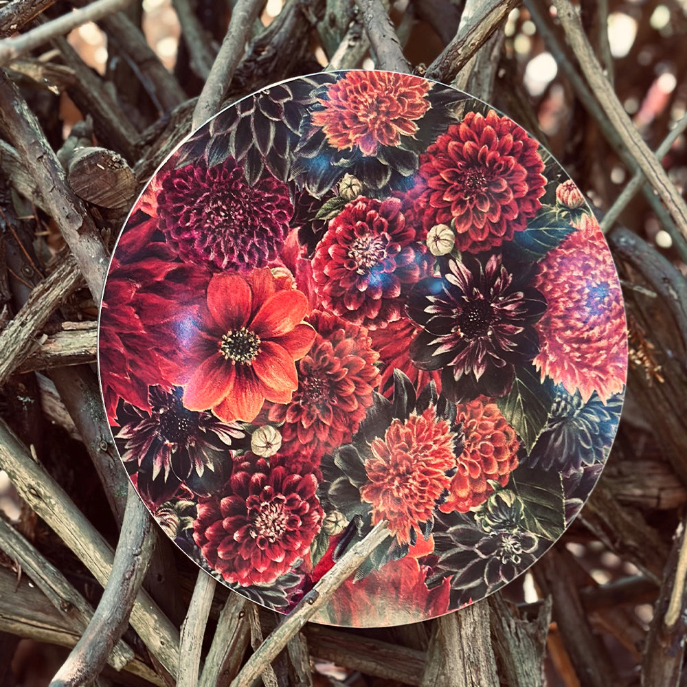 ... Read moreNature’s most sculptural of flowers, the dahlia, adds definition and drama to our Autumn table settings. In rich raspberry and aubergine tones, comes a vivid study of a blooming and expressive dahlia on this cork-backed placemat.