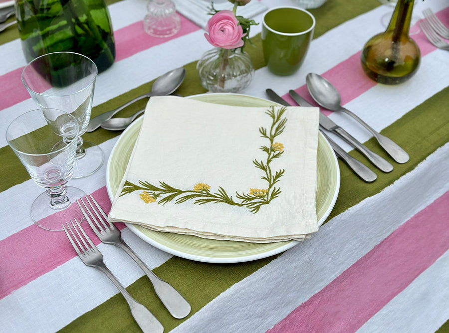 Embroidered Fennel Flower Linen Napkin, 50x50cm