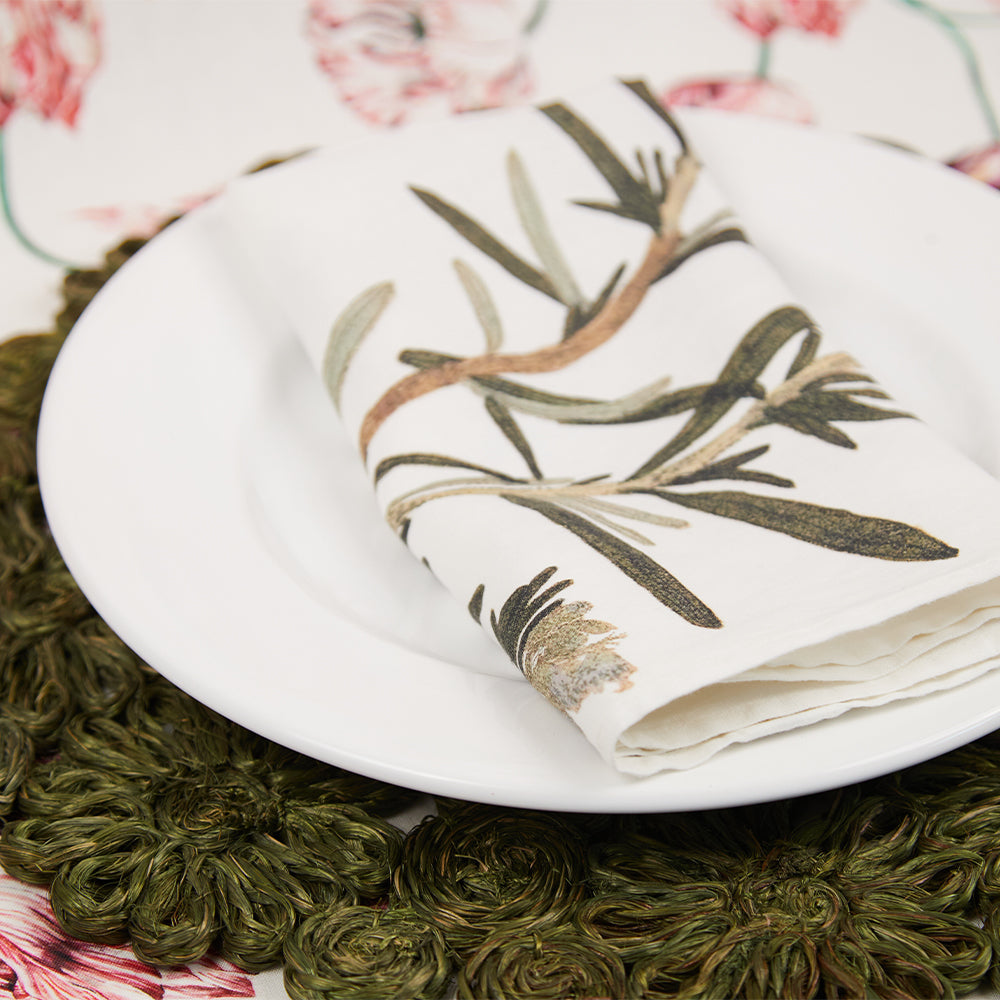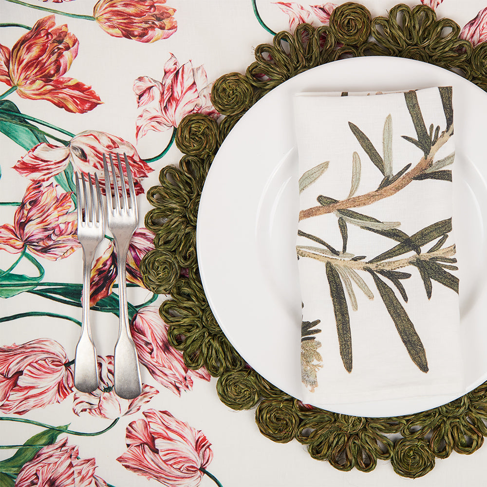 Floral Woven Abaca Placemat in Grass Green, 40cm