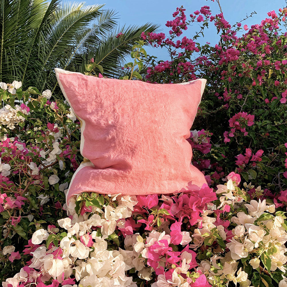 This hand painted rose pink cushion cover is made from 100% Italian linen.