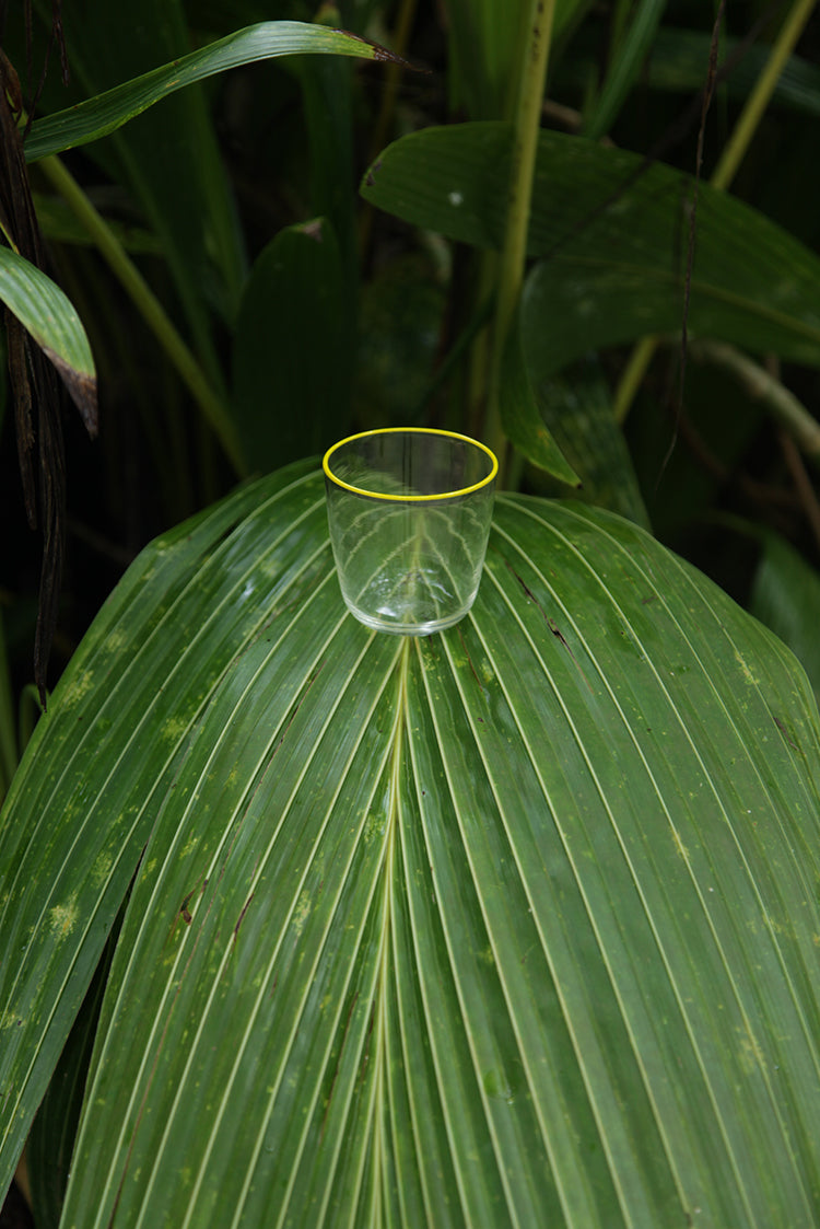 Handblown Clear Bumba Glass Tumbler with Lemon Yellow Rim, 30cl