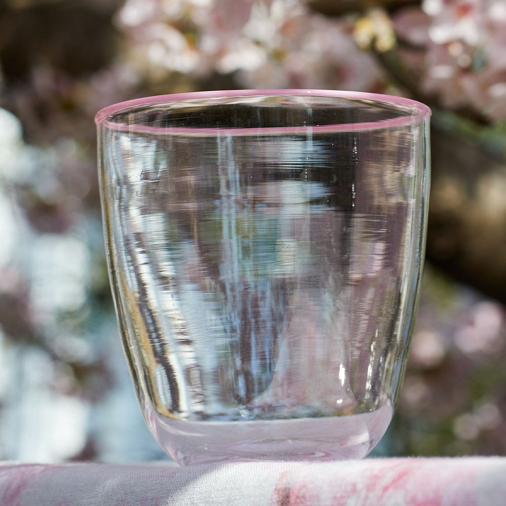 Handblown Clear Bumba Glass Tumbler with Rose Pink Rim, 30cl