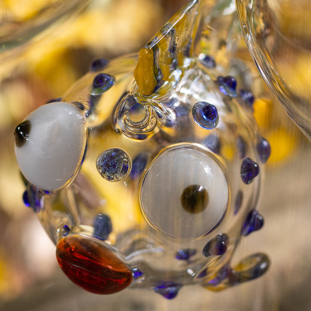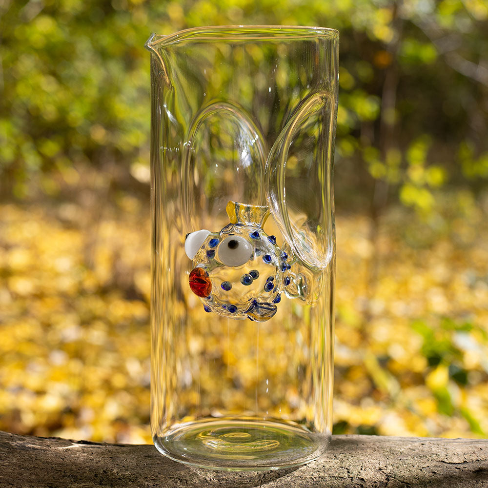 Handblown Glass Blue Spotted Fish Carafe, 24.5cm