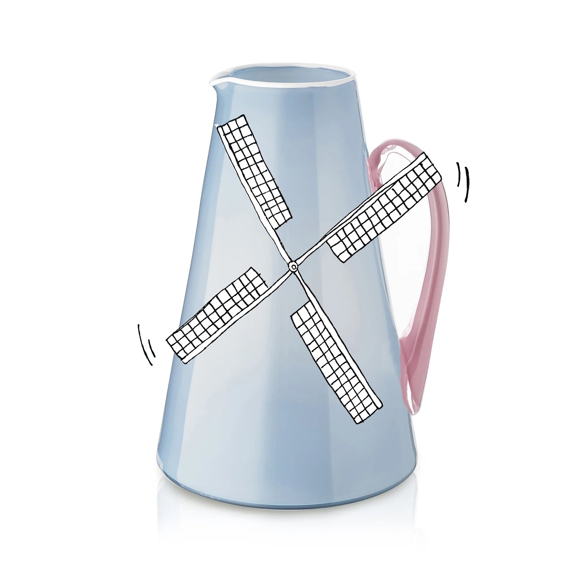 ... Read moreWhether for water, cocktails or flowers, our exclusive handblown, white-rimmed jug in delicate powder blue and rose pink brings just the right amount of zing to the room.