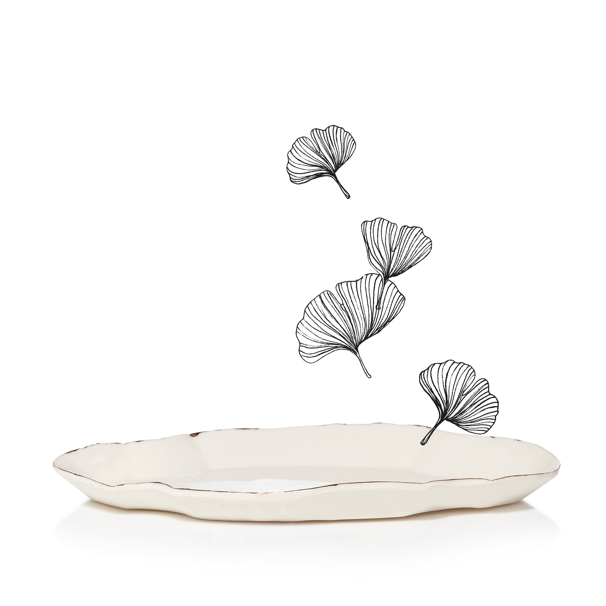 ... Read moreHandmade locally in a small studio in Notting Hill, this stunning porcelain 'Deco Jagged' tray with delicate hand painted gold edging adds that final special touch to your table.