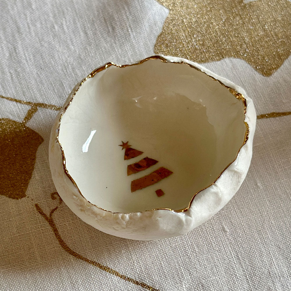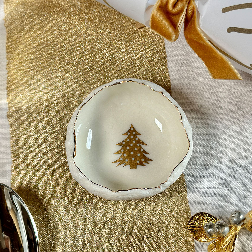 HB Jagged Bowl with Gold Christmas Tree, 7cm (ASSORTED)